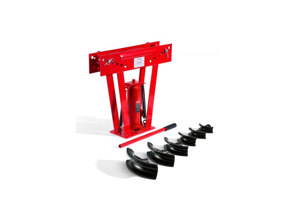 Hydraulická ohýbačka trubek , 12tunová ruční ohýbačka měděných výfukových trubek se 6 matricemi (1/2" - 2") a nastavitelnými válečky 90 - 180°, ohýbačka trubek pro vysoké zatížení pro konstrukci potrubí a zábradlí
