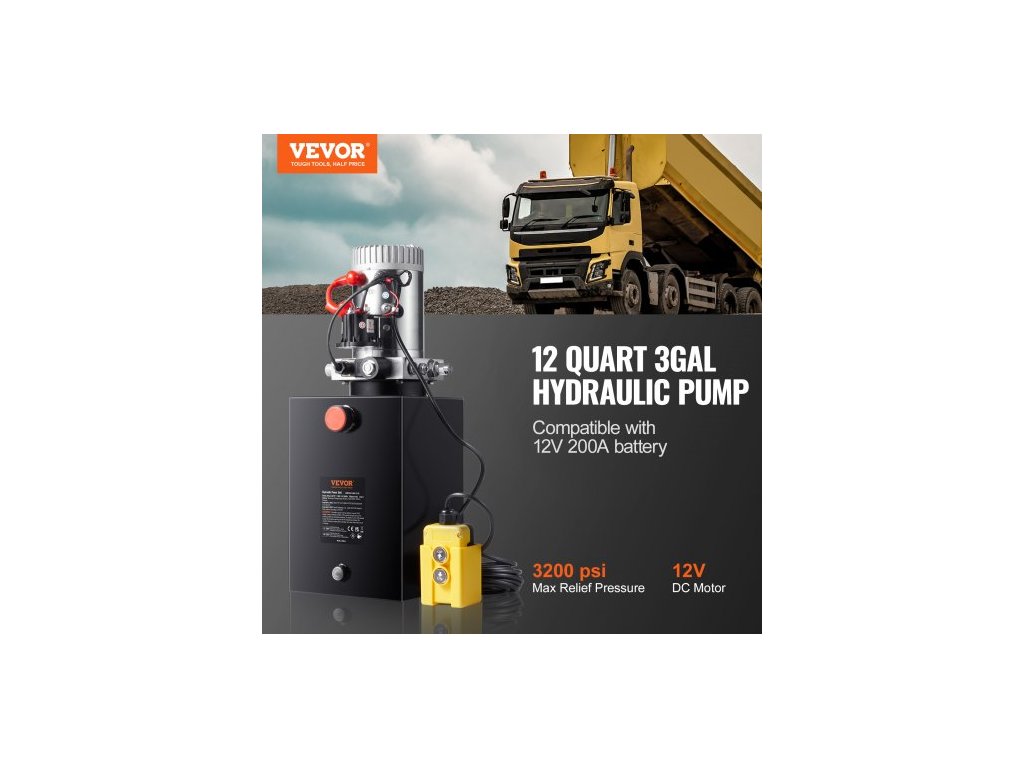 Hydraulické čerpadlo , 12litrový hydraulický agregát, jednočinné čerpadlo pro sklápěcí přívěs, průtok 0,91 GPM, maximální přetlak 3200 PSI, hydraulické čerpadlo DC 12V pro zvedání automobilů s sklápěcím přívěsemSnadná práce s těžkými stroji