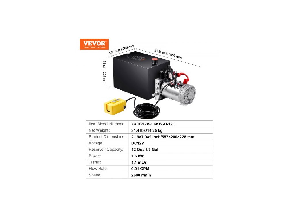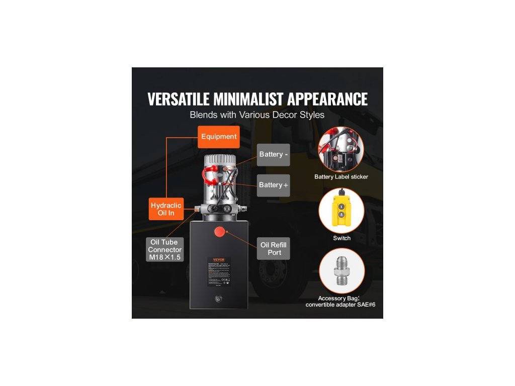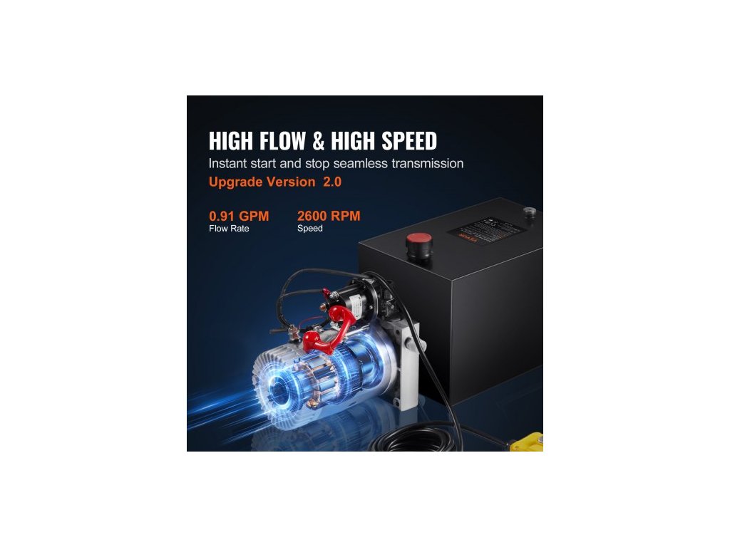 Hydraulické čerpadlo , 12litrový hydraulický agregát, jednočinné čerpadlo pro sklápěcí přívěs, průtok 0,91 GPM, maximální přetlak 3200 PSI, hydraulické čerpadlo DC 12V pro zvedání sklápěcích přívěsů