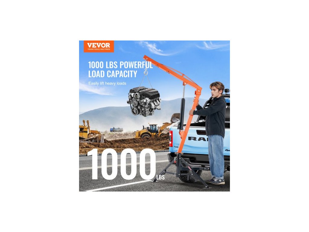 Hydraulický jeřáb pro pickupy , nosnost 456 kg, otočný o 360°, jeřáb namontovaný na závěs se třemi nosnostmi výložníku 227 kg, 350 kg a 450 kg, pro zvedání zboží ve stavebnictví, lesnictví a továrněVysoká nosnost