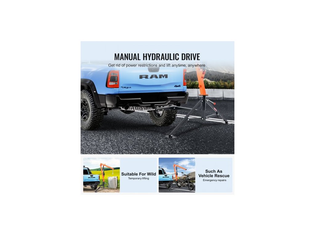 Hydraulický jeřáb pro pickupy, nosnost 453 kg, otočný o 360°, jeřáb montovaný na závěs se třemi nosnostmi výložníku: 227 kg, 353 kg a 453 kg, pro zvedání zboží ve stavebnictví, lesnictví a továrnách