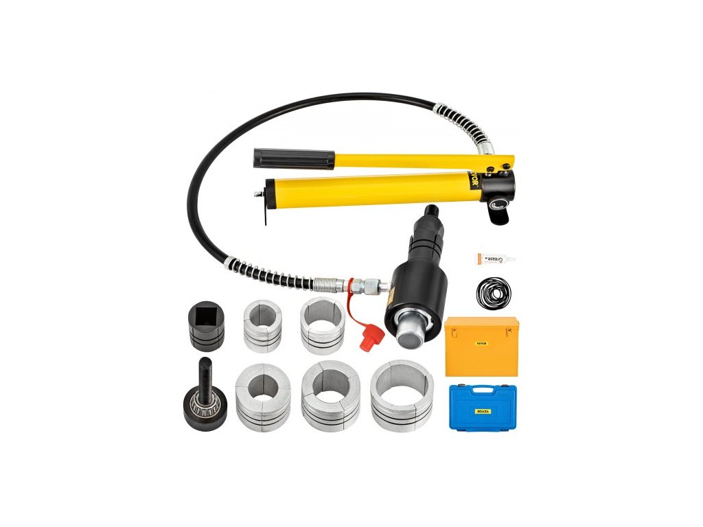 Hydraulický rozšiřovač výfukových trubek , velikost 4,1 až 10,8 cm, manuální hydraulický natahovač trubek 10 T se 4 matricemi a 2 úložnými pouzdry pro měděné a hliníkové trubky při opravách automobilů