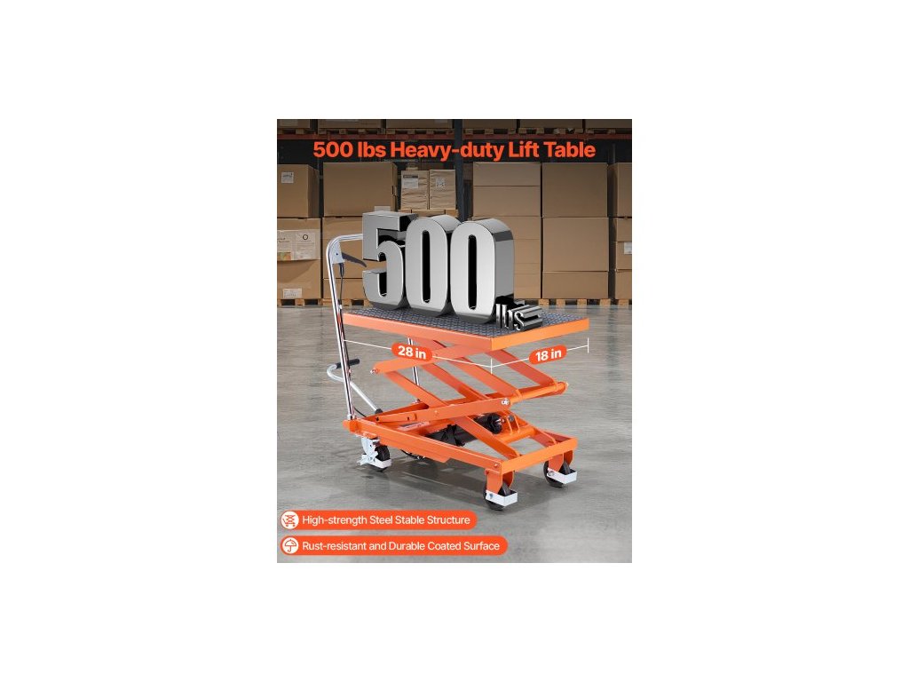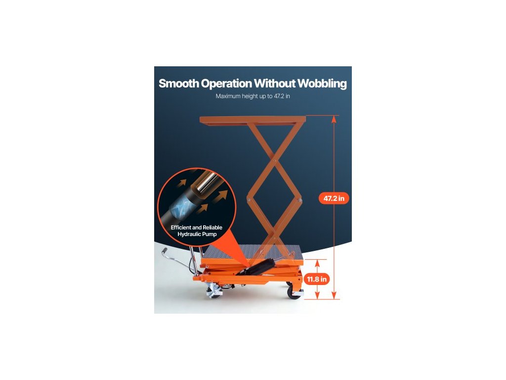 Hydraulický zvedací stůl , nosnost 500 liber, výška zdvihu 47,2", dvojitý nůžkový zvedací vozík se 4 kolečky a protiskluzovou podložkou, manuální hydraulický zvedací vozík pro manipulaci s materiálem a přepravu