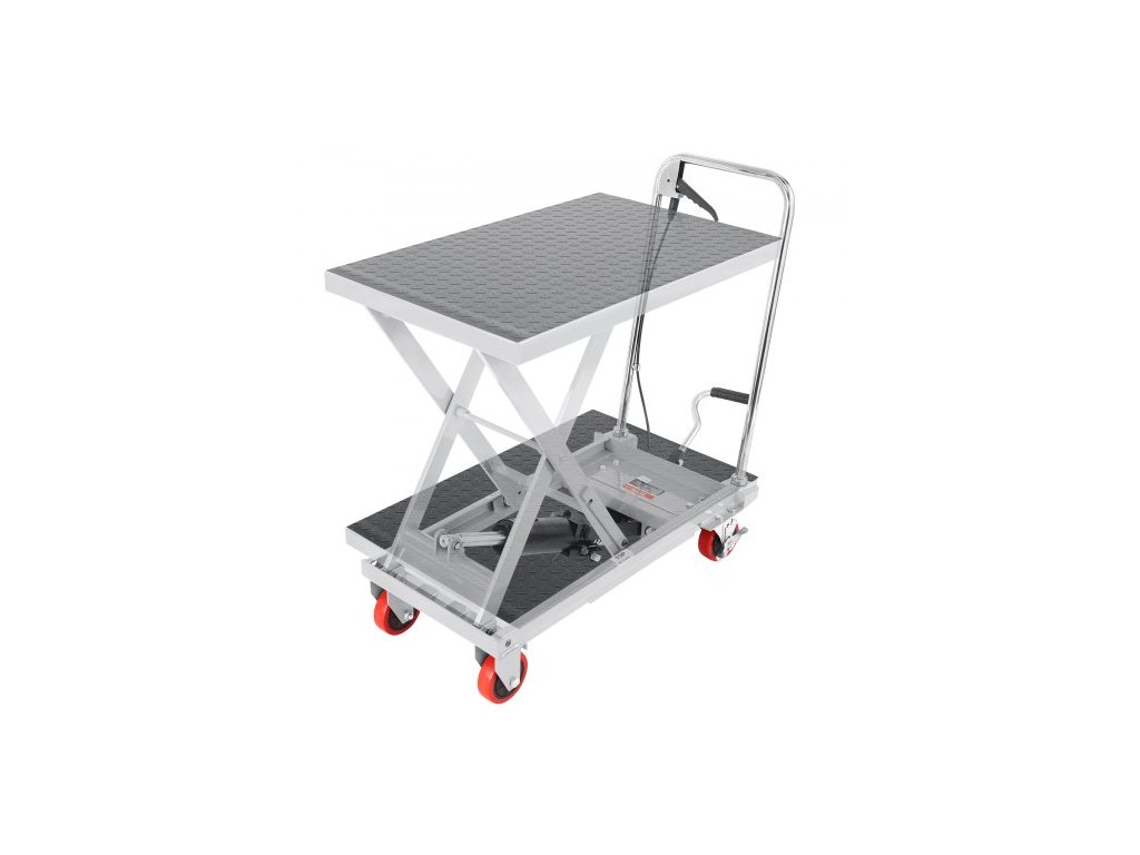 Hydraulický zvedací vozík , nosnost 227 kg, výška zdvihu 74 cm, manuální zvedací stůl s jedním nůžkovým pohonem, 4 kolečky a protiskluzovou podložkou, hydraulický nůžkový vozík pro manipulaci s materiálem, šedýVysoká nosnost 227 kg