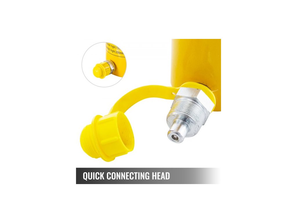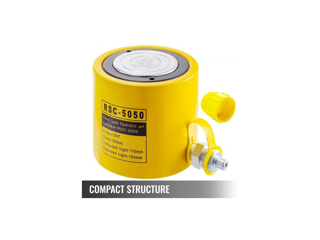 Hydraulický zvedák 50 tun, zdvih 2", jednočinné čerpadlo, 50 mm, pevná konstrukce, snadné zvedání, rychlospojka, kompaktní konstrukce, hladký povrch, všestranné použití, průměr hlavní hřídele: 80 mm/3,1 palce, nosnost: 50 T/110000 LBS, vnitřní průměr: 80 mm/3,1 palce, zdvih beranu: 50 mm/2 palce, vnější průměr: 128 mm/5 palců, hmotnost položky: 9,8 kg/21,6 lbs, celková výška: 112 mm/4,4 palceDoplňkové parametry
