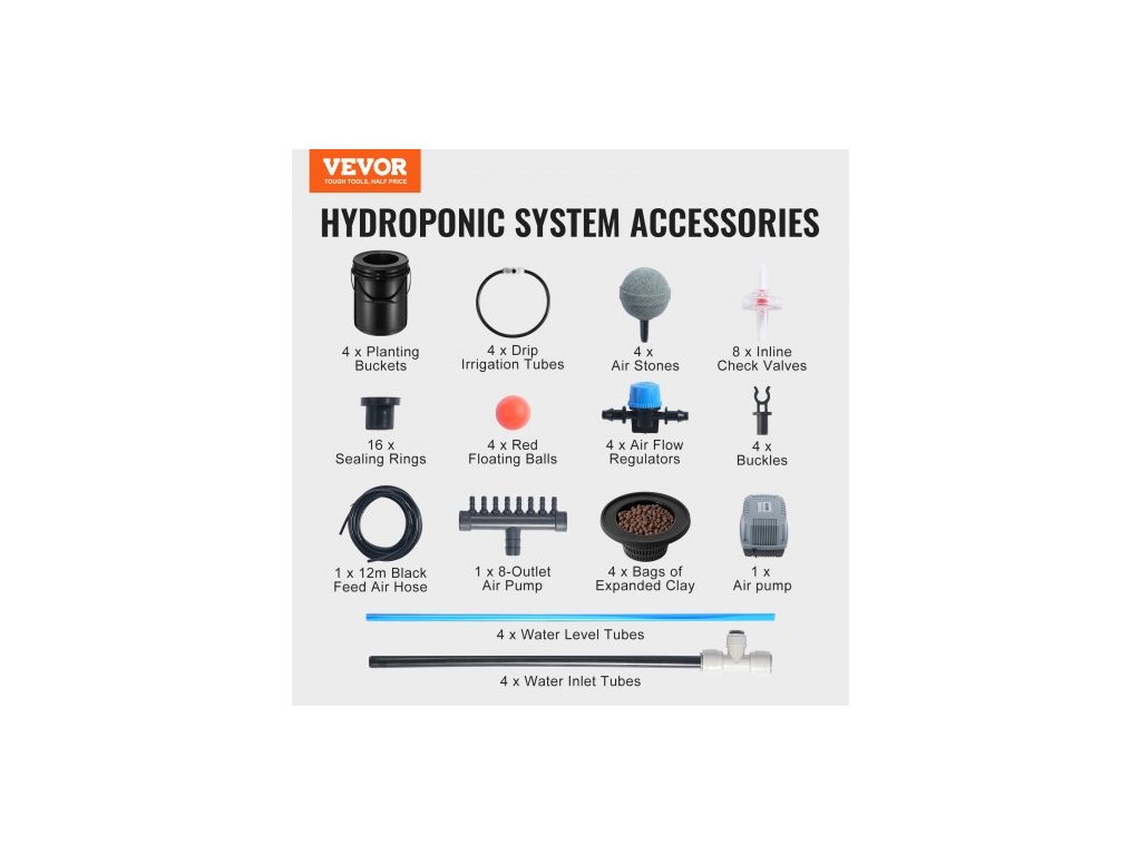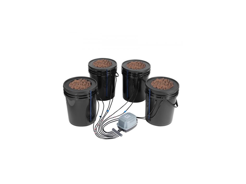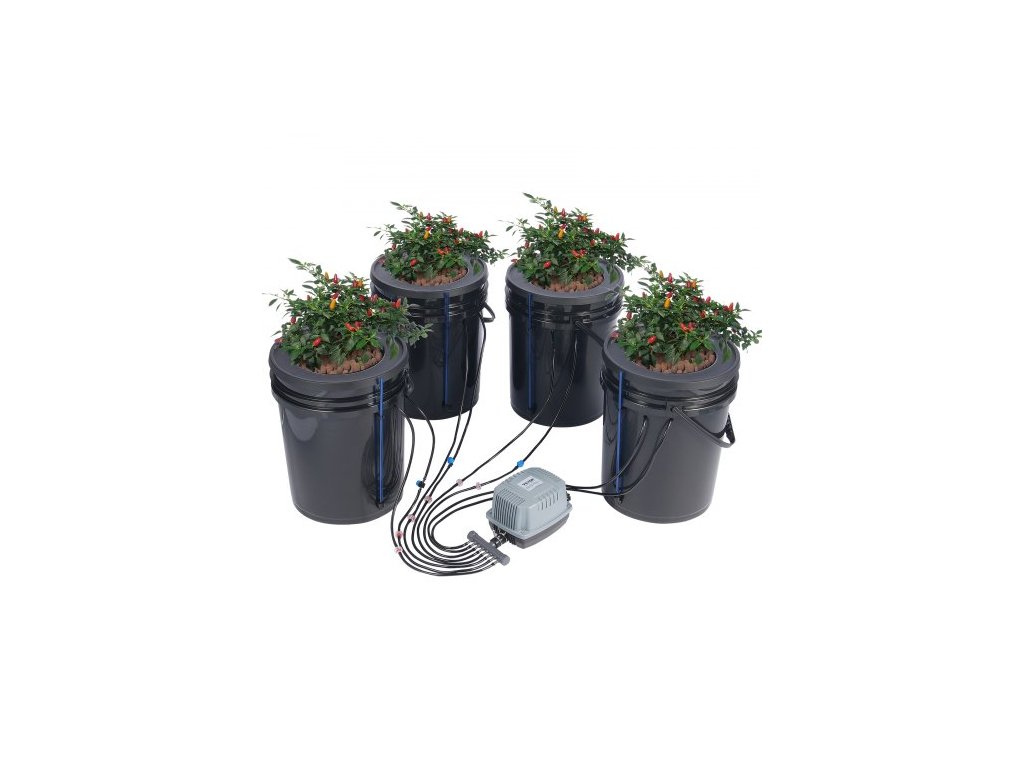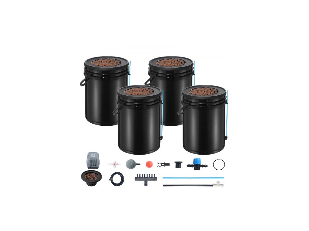 Hydroponický pěstební systém DWC, hydroponický pěstební systém s horní sadou pro zavlažování, hluboká voda, 4 kbelíky o objemu 5 galonů, se vzduchovým čerpadlem, vzduchovacími kameny a hladinoměrem pro listovou zeleninu