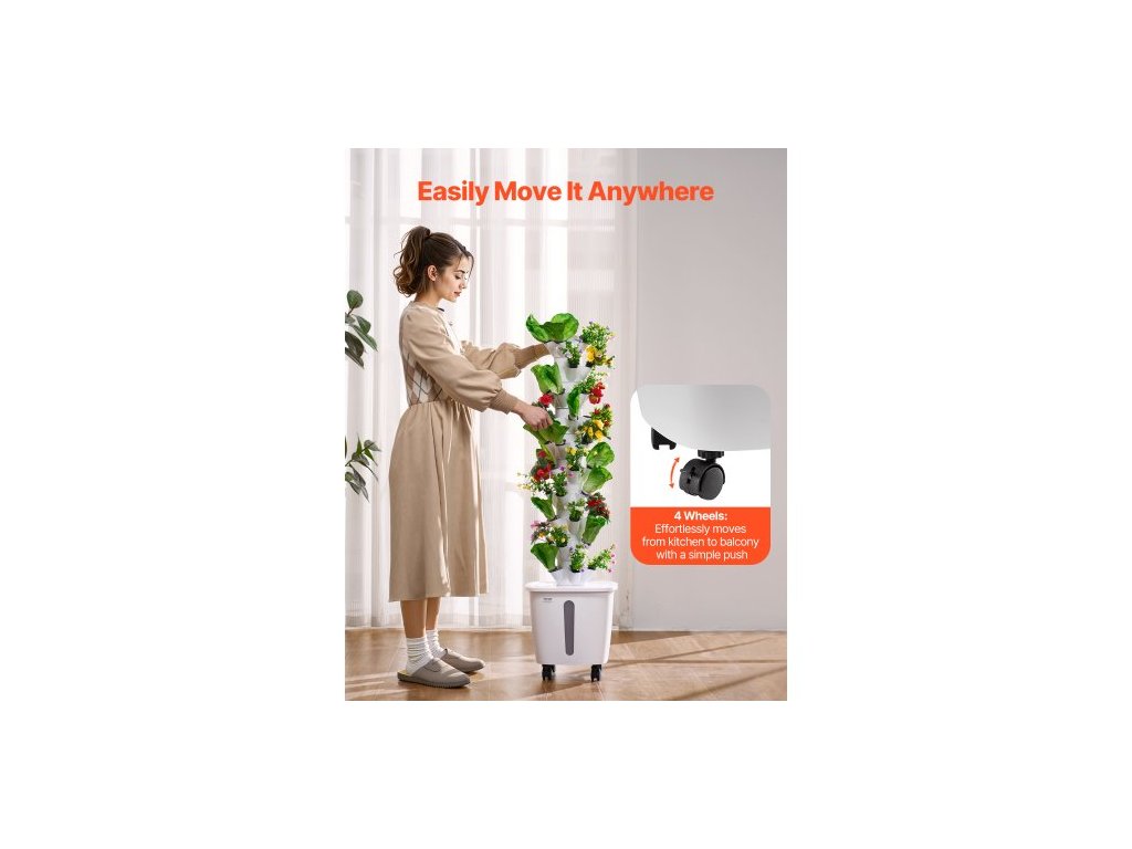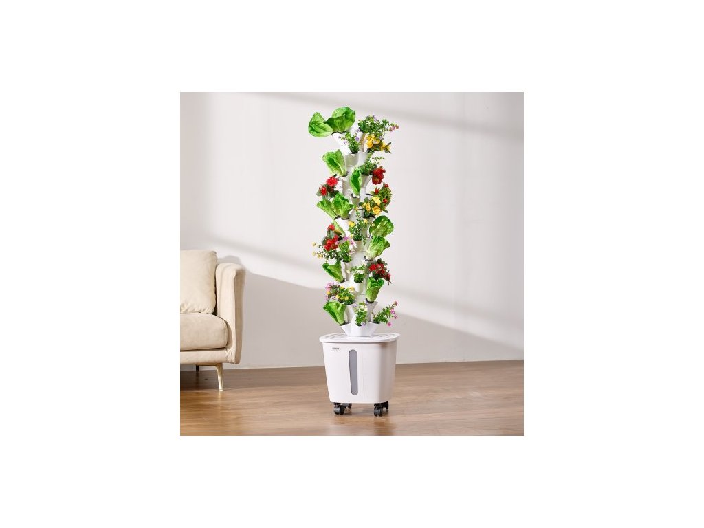 Počet vrstev: 10,Hlavní materiály: ABS, PP,Včetně pěstebního světla: Ne,Objem vodní nádrže: 20 l,Kolečka: Ano,Barva: Bílá,Číslo modelu položky: VV1-10C-EU,Hmotnost výrobku: 9,48 lbs / 4,3 kg,Rozměry: 13,78 x 13,78 x 51,57 palce / 350 x 350 x 1310 mm,Počet výsadbových slotů: 50