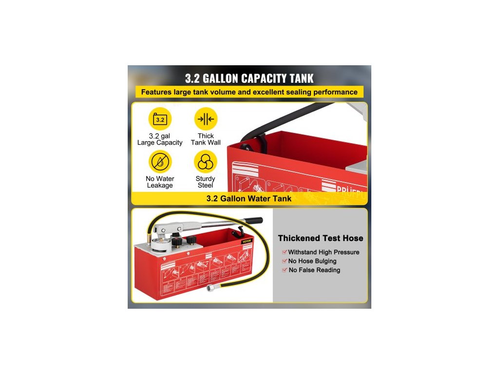 Hydrostatické tlakové čerpadlo , testování do 60 barů/860 psi, nádrž o objemu 12,1 l, sada hydraulického ručního tlakoměru vody s tříjednotkovým manometrem a připojením R 1,27 cm pro tlakové zkoušky kapalin v potrubíRozsah tlaku 60 barů