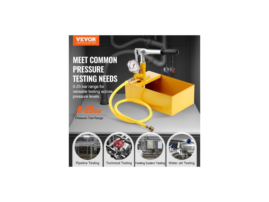 Hydrostatické zkušební čerpadlo , max. 25 barů/362 PSI, sada hydraulického ručního tlakoměru vody s jedním ventilem a manometrem, nádrž na vodu o objemu 5 l, hadice 1 m s vnějším závitovým konektorem 1,27 cm pro potrubíRychlé měření tlaku