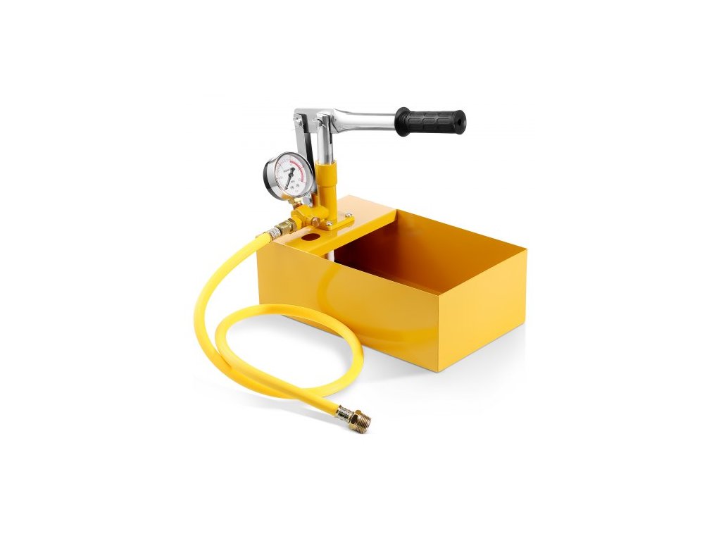 Hydrostatické zkušební čerpadlo , max. 25 barů/362 PSI, sada pro hydraulický ruční tlakoměr s jedním ventilem a manometrem, 5l vodní nádrž, 1m hadice s vnějším závitem 1,27 cm, konektor pro potrubí