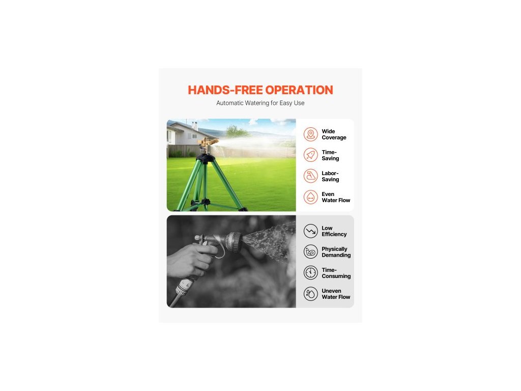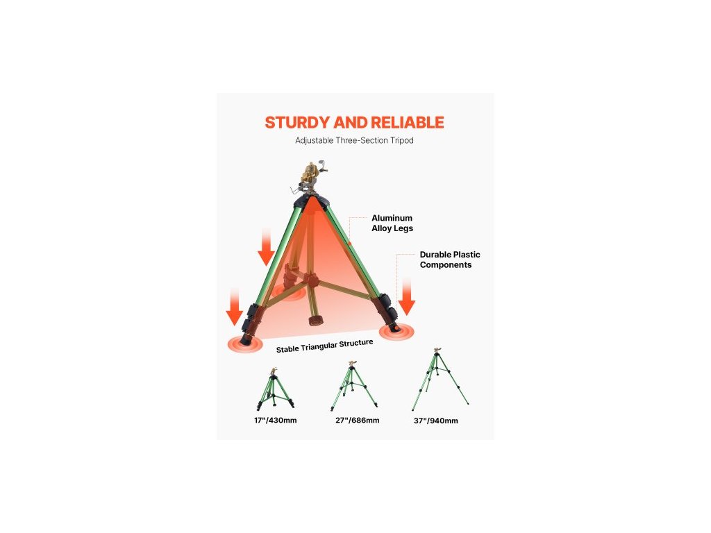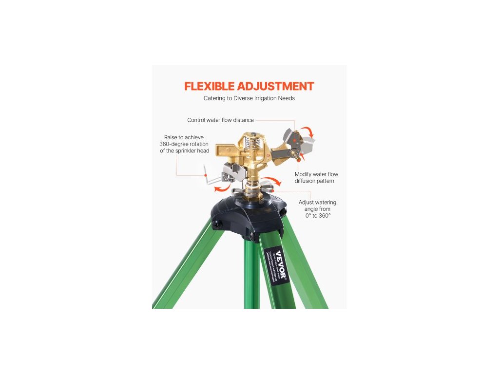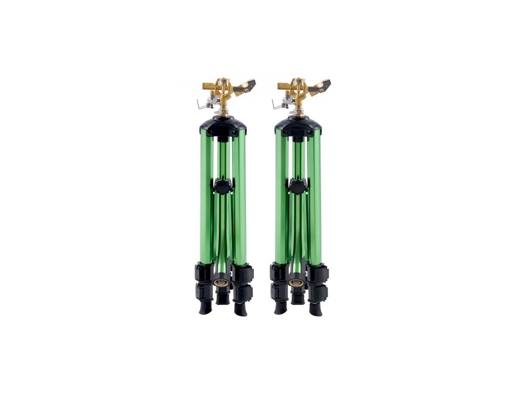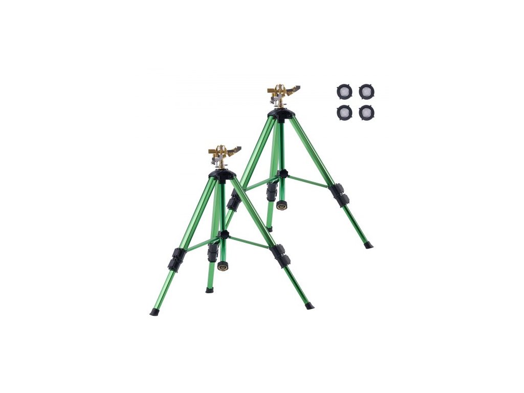 Impact Sprinkler na stativovém podstavci, 2 balení, Vysoce odolné stativové zavlažovače s mosaznou hlavicí a konektorem G3/4", 360stupňový velkoplošný zavlažovací zavlažovač, Nastavitelná výška zavlažování pro zahradu