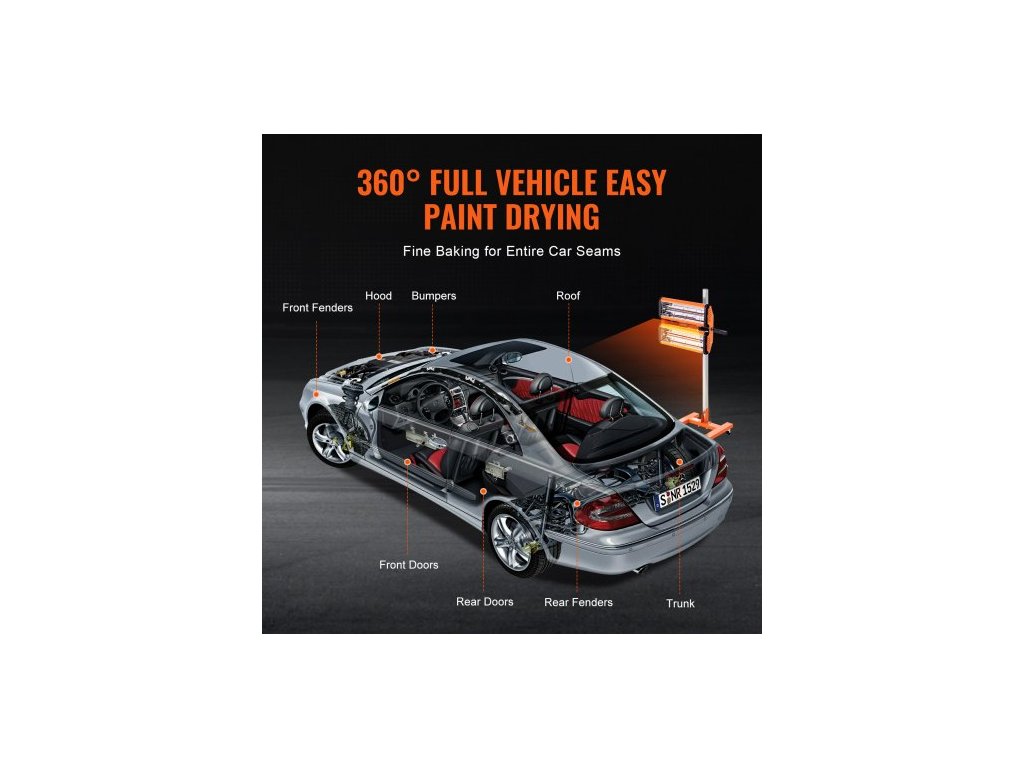 Infračervená vytvrzovací lampa , 2200W, časování 1-60 min, automatické vytvrzovací světlo s držákem, 5,17 čtverečních stop, ohřívače pečící kabiny, sušička laku pro opravy na místě, sušení motoruSilná penetrační schopnost