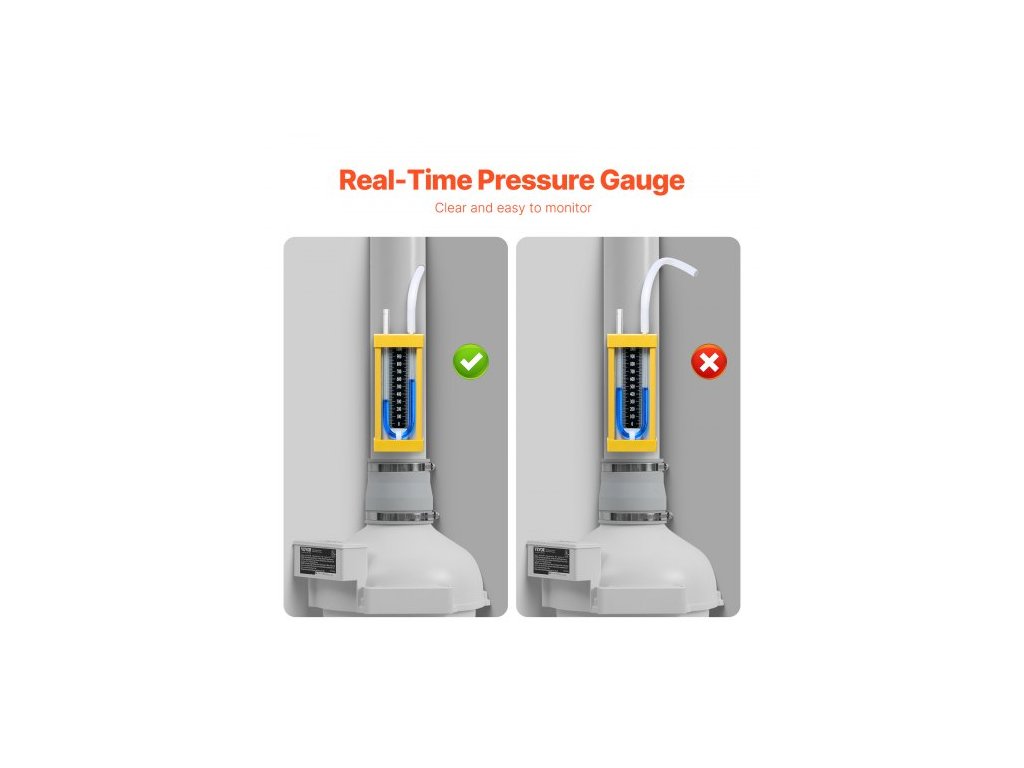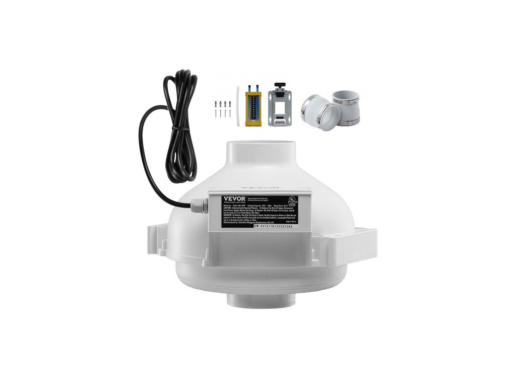 Instalační sada radonového ventilátoru 4 až 3,5 palce, tichý systém ventilátoru pro zmírnění radonu o výkonu 260 CFM se 2 spojkami, indikátor tlaku, vodotěsný potrubní ventilátor pro odsávání vnitřních i venkovních prostorů