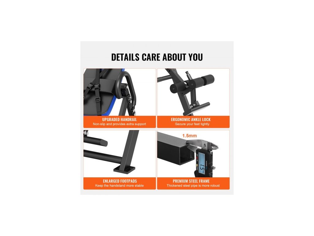 Inverzní stůl , nosnost 136 kg, vysoce odolný inverzní stůl, dekompresní zádový repetirní stroj, silový tréninkový stroj s opěrkou hlavy, aretace kotníků, nastavitelný ochranný pás, modro/černýNosnost 136 kg