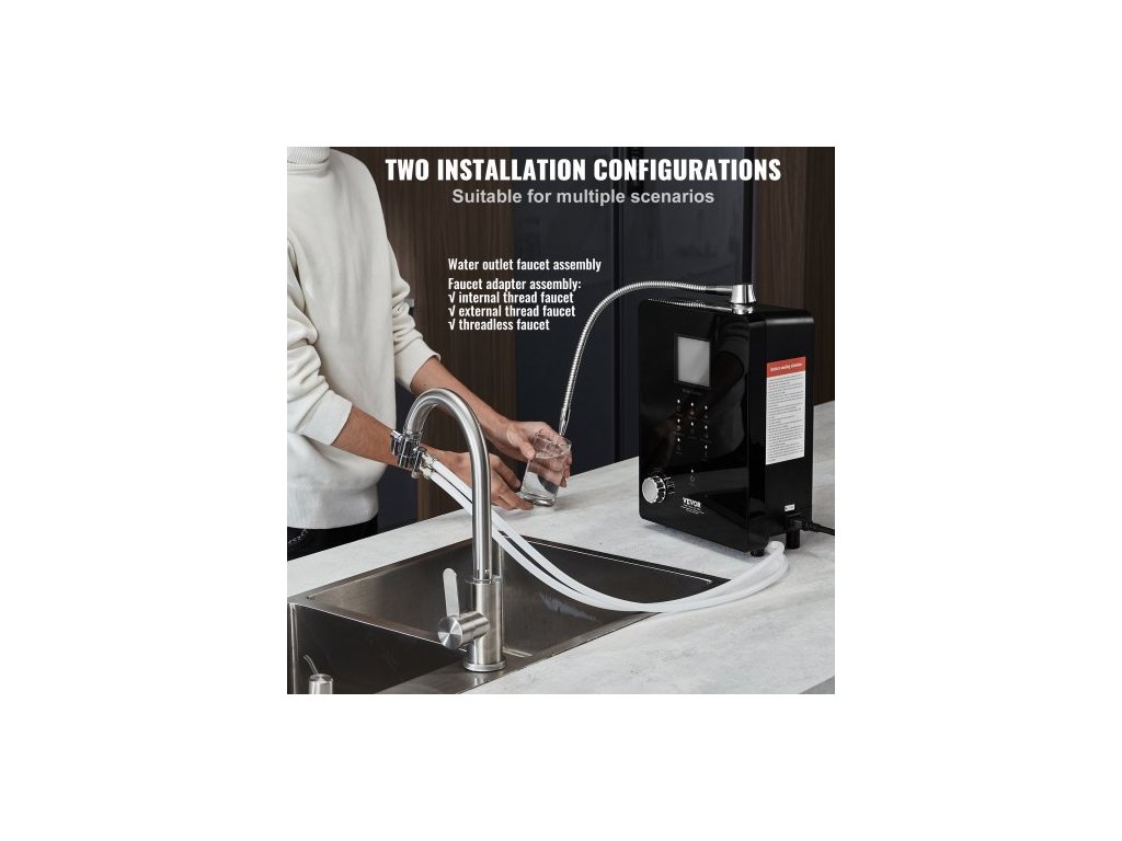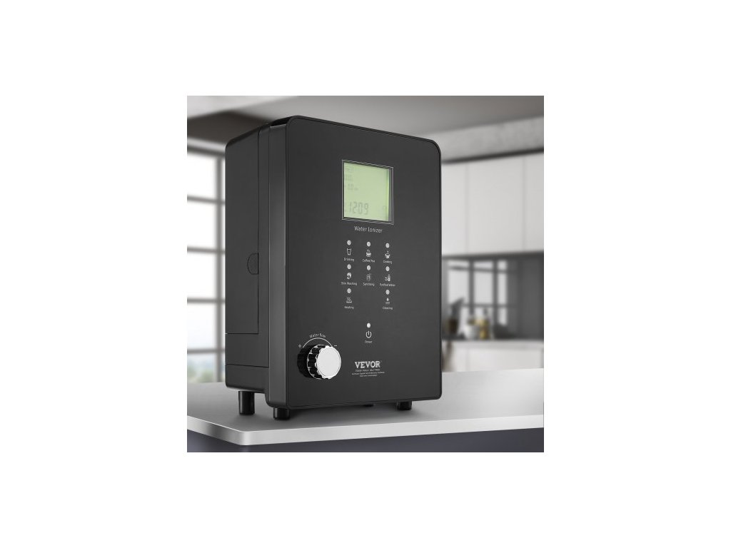 Ionizátor alkalické vody , pH 3-11,2, alkalický kyselý vodíkový čistič vody, 6 nastavení vody, domácí filtrační systém, ORP až -800mV, 9000 l na filtr, UV funkce, ohřev vody