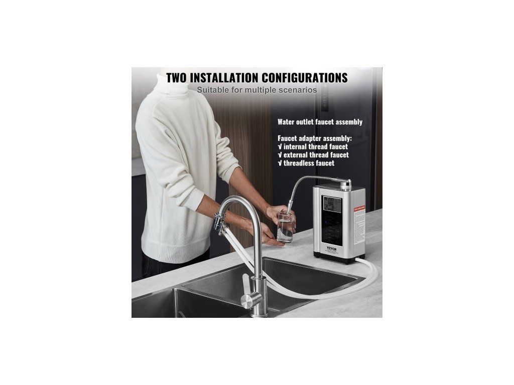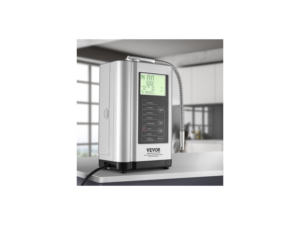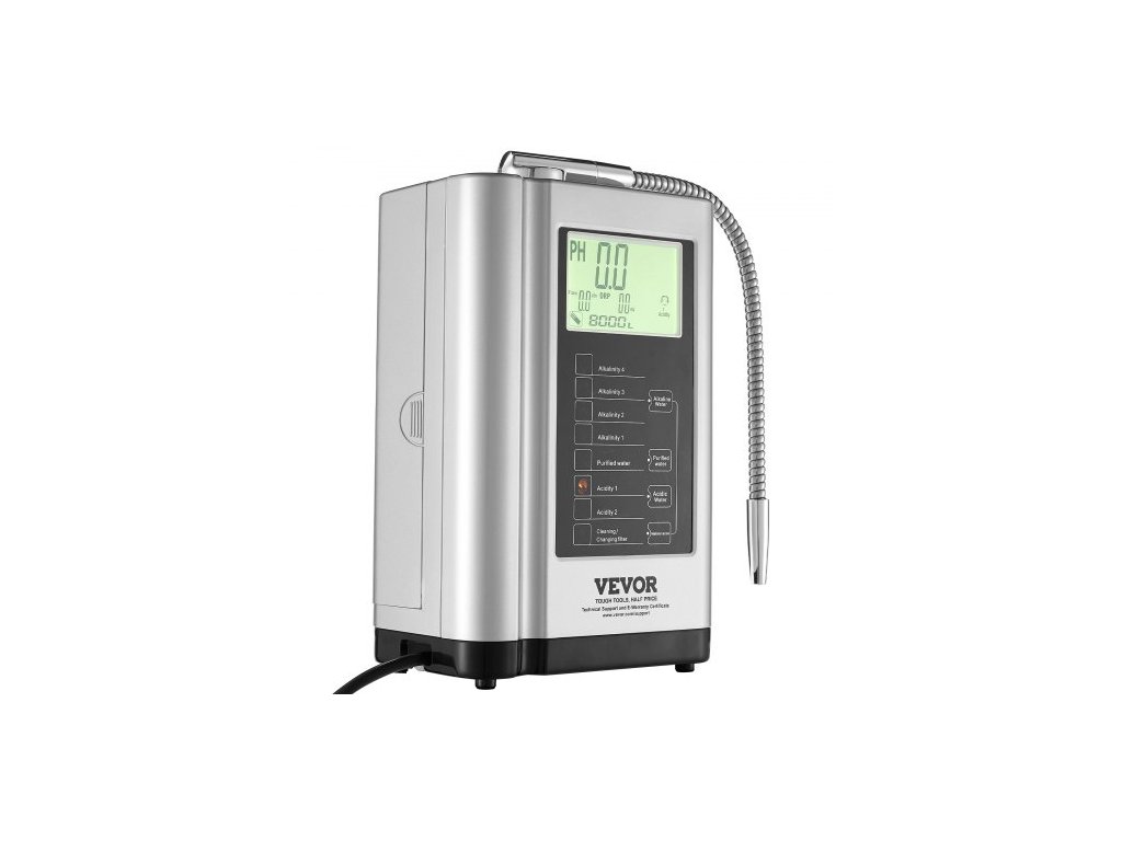 Ionizátor alkalické vody , pH 3,5-10,5, alkalický kyselý vodíkový čistič vody, 7 nastavení vody, domácí filtrační systém, ORP až -550mV, 8000 l na filtr, automatické čištění, bílá