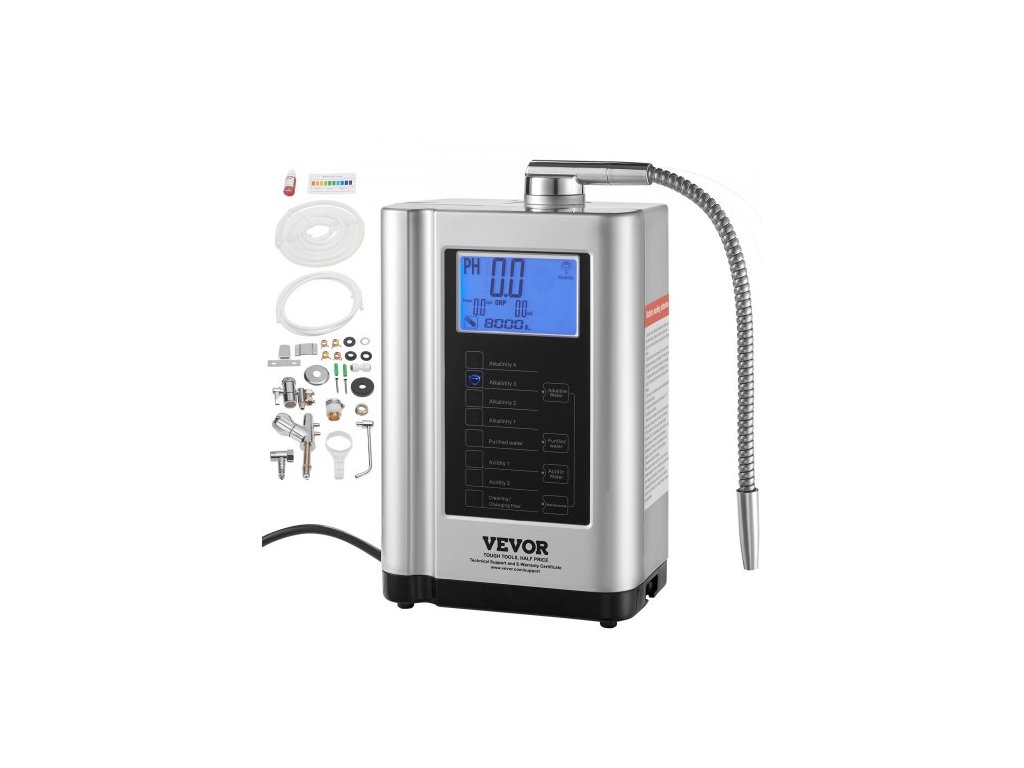 Ionizátor vody s alkalickou vodou, pH 3,5-10,5, alkalická kyselá vodíková čistička vody, 7 nastavení vody, domácí filtrační systém, ORP až -550mV, 8000l na filtr, automatické čištění, bílá7 nastavení pro zdravou vodu