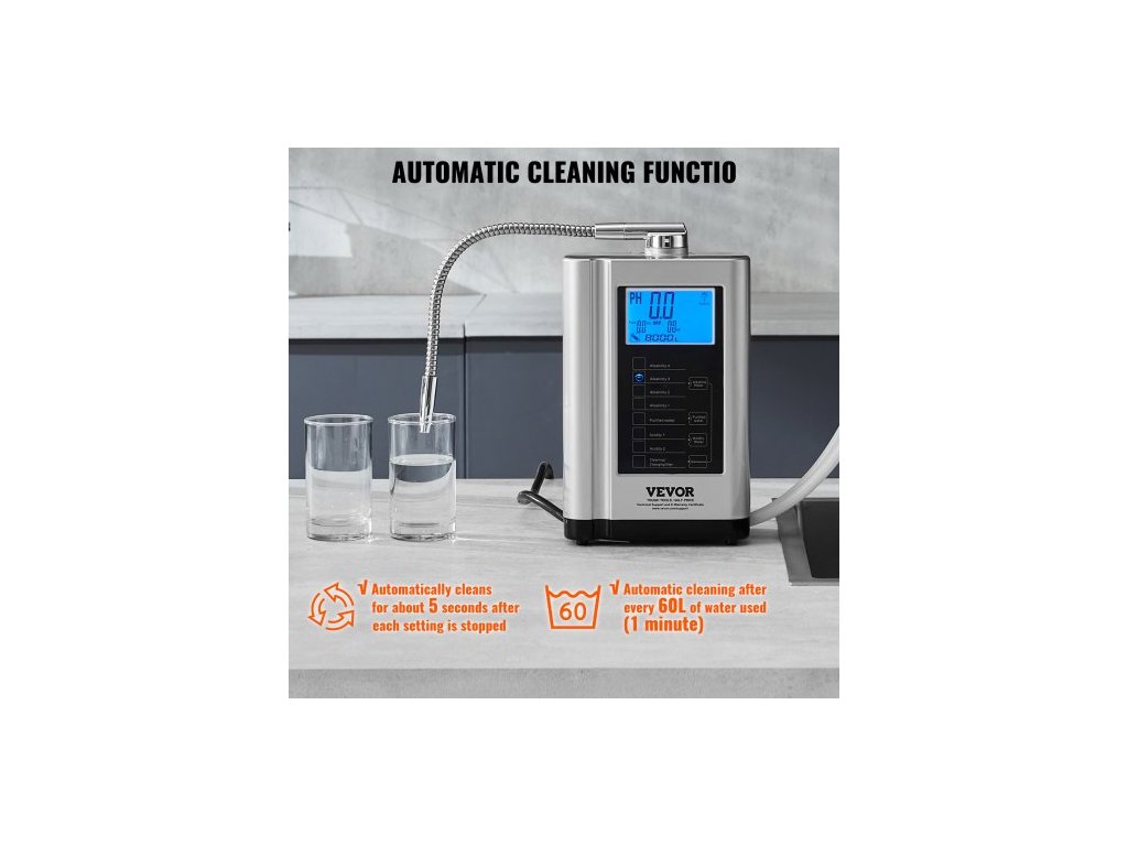 Ionizátor vody s alkalickou ionizací, pH 3,5-10,5, alkalická kyselá vodíková čistička vody, 7 nastavení vody, domácí filtrační systém, ORP až -650mV, 8000l na filtr, automatické čištění, bílá7 nastavení pro zdravou vodu