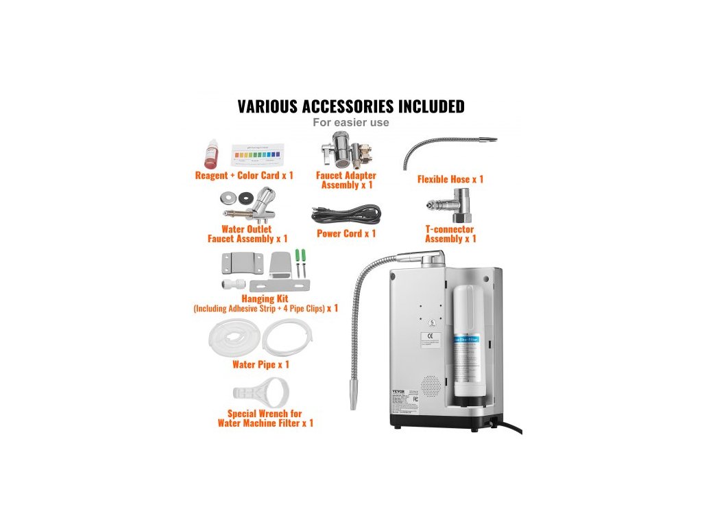 Použitelný rozsah TDS: 50-1000ppm, Obsah vodíku: 1300ppd, Provozní vlhkost: ≤90% (při 25℃), Pohotovostní výkon: ≤1,5W, Rozsah pH: 3,5-10,5, Rozsah ORP: +500~-650mV, Objem filtrovatelné vody: 8000l, Číslo modelu položky: EHM-729, Provozní voda Rozsah tlaku: 0,1-0,3 MPa, Čistá hmotnost: 2,77 kg / 6,1 lbs
