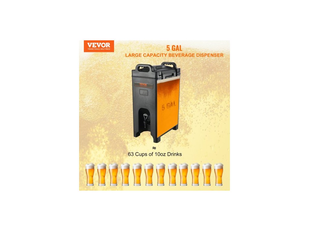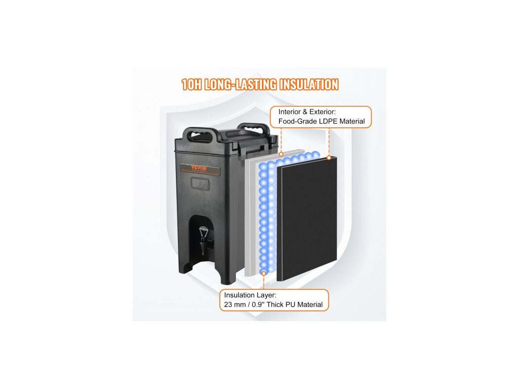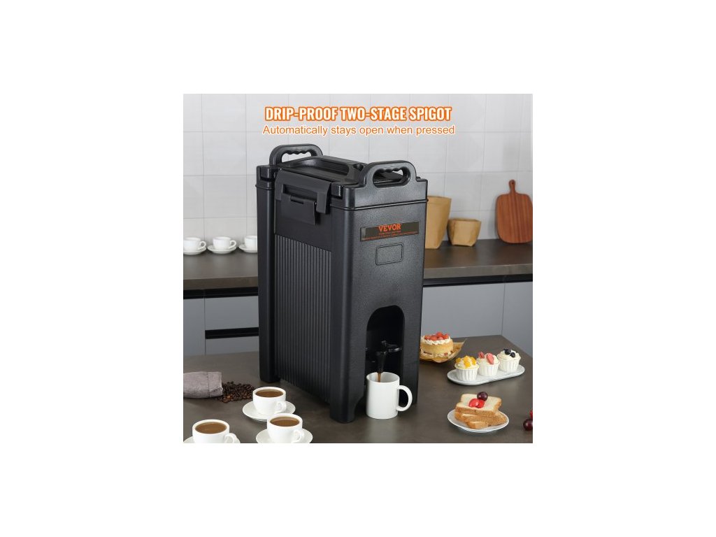 Výdejník nápojů s izolací, 18,9 l, servírovací talíř na teplé a studené nápoje z LDPE potravinářské kvality, termální chladič na nápoje s 2,3cm PU vrstvou, dvoustupňová rukojeť kohoutku, pro restaurace a prodejny nápojůProstorná kapacita