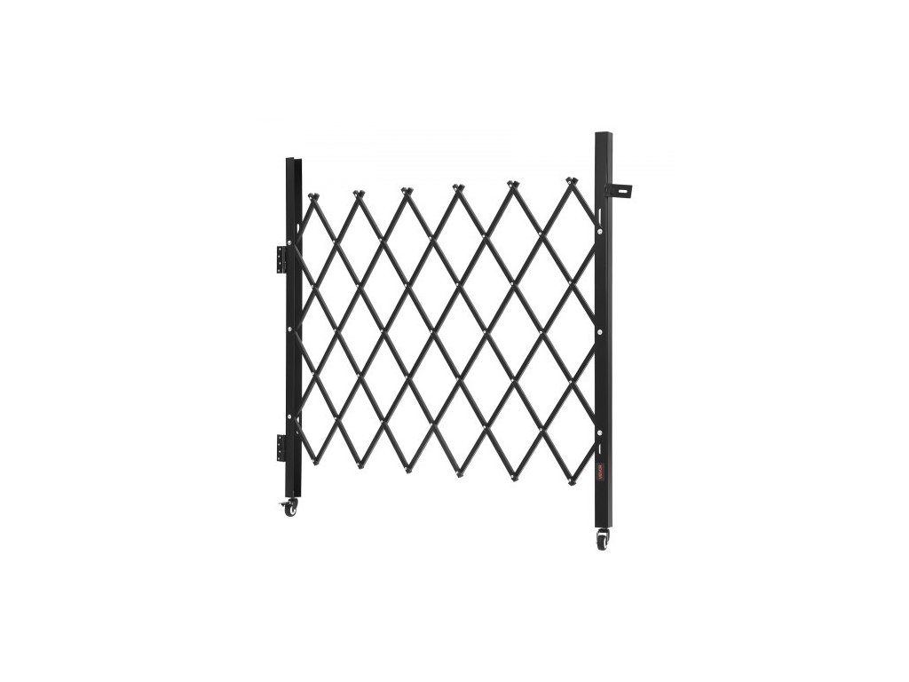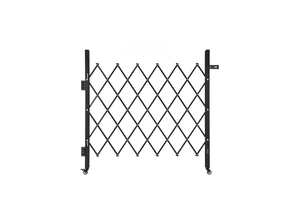 Jednoduchá skládací bezpečnostní brána, uzamykatelná nůžková brána s kolečky otočnými o 360°, venkovní ocelová zatahovací brána s barikádou, pro zabezpečení vstupu, garáže, sklady a bazény, 110 × 131 cm (Š × V)Uzamykatelná otočná kolečka