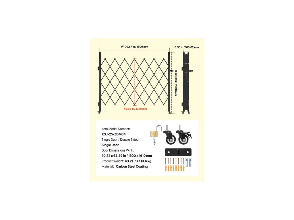 Jednodveřové / Oboustranné: Jednodveřové,Rozměry dveří: 70,87 x 63,39 palce / 1800 x 1610 mm,Číslo modelu položky: XSJ-25-ZDM04,Hmotnost výrobku: 43,21 lbs / 19,6 kg,Rozměry výrobku: 70,87 x 1,57 x 63,39 palce / 1800 x 40 x 1610 mm