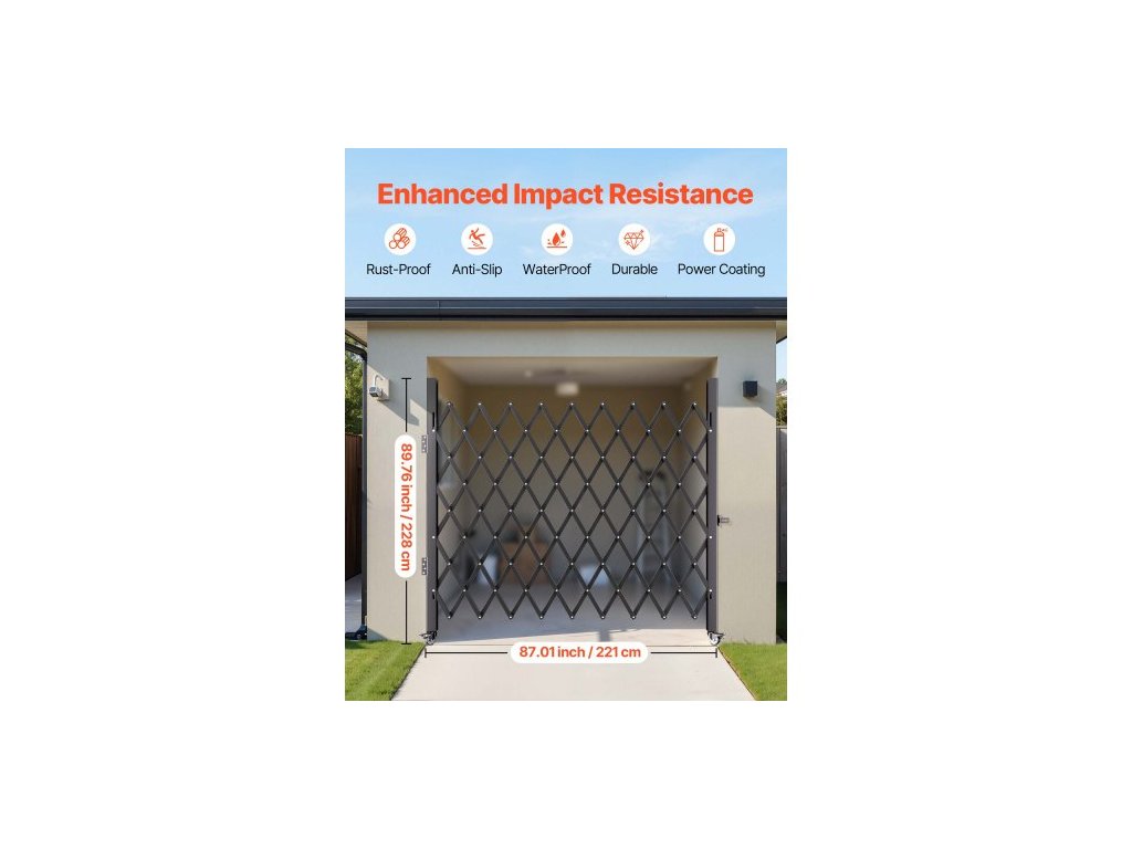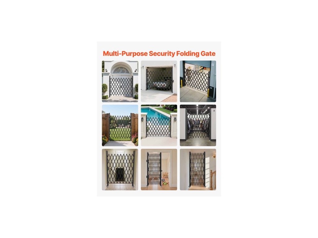 Jednoduchá skládací bezpečnostní brána , 198 cm V x 229 cm Š, skládací brána, ocelová harmoniková bezpečnostní brána, flexibilní rozšiřující se bezpečnostní brána, 360° rolovací barikádová brána, nůžková brána/dveře s padákem