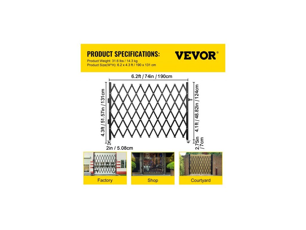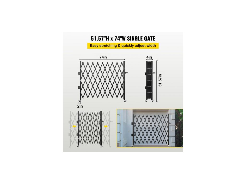 Jednoduchá skládací bezpečnostní brána, 131,00 x 187,96 cm skládací brána, ocelová harmoniková bezpečnostní brána, flexibilní rozšiřující se bezpečnostní brána, 360° rolovací barikádová brána, nůžková brána nebo dveře s visacím zámkemRozšiřitelná šířka 6,2 stop