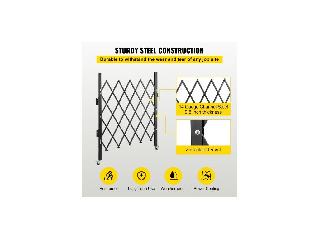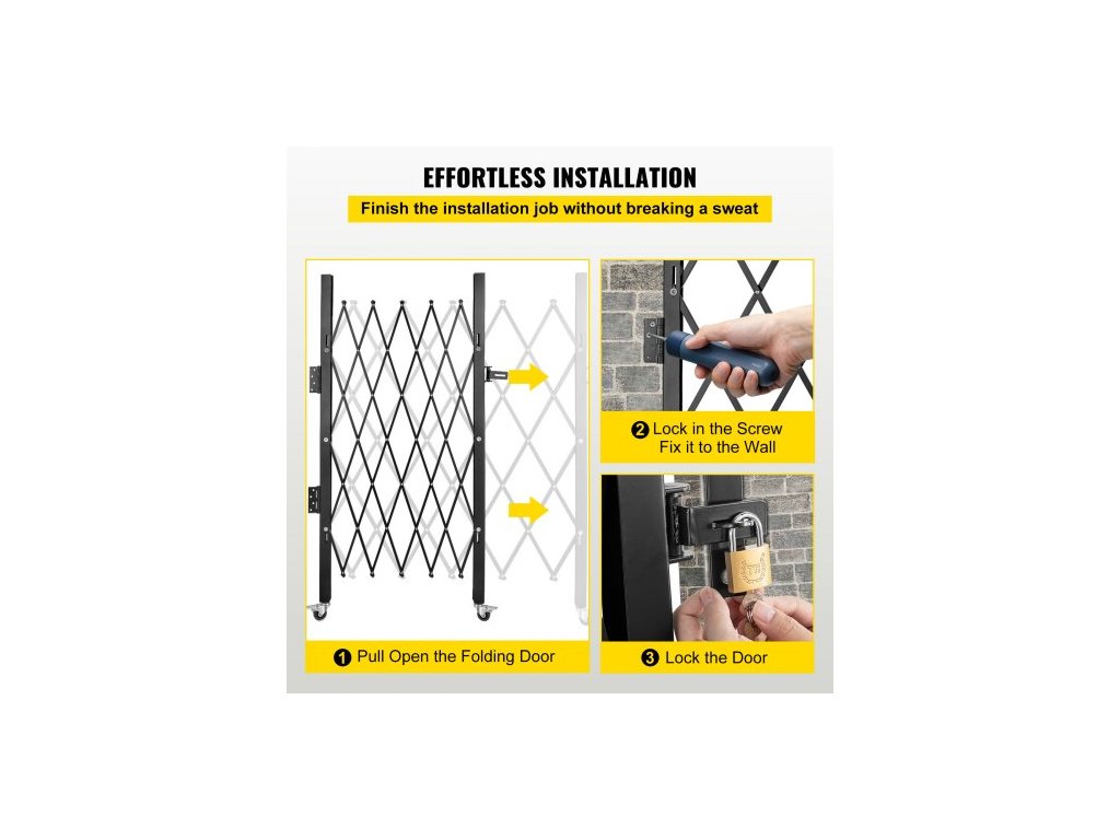 Jednoduchá skládací bezpečnostní brána, 94 × 122 cm (Š × V) skládací brána, ocelová harmoniková bezpečnostní brána, flexibilní rozšiřující se bezpečnostní brána, 360° rolovací barikádová brána, nůžková brána nebo dveře s visacím zámkemRozšiřitelná šířka 3 stopy