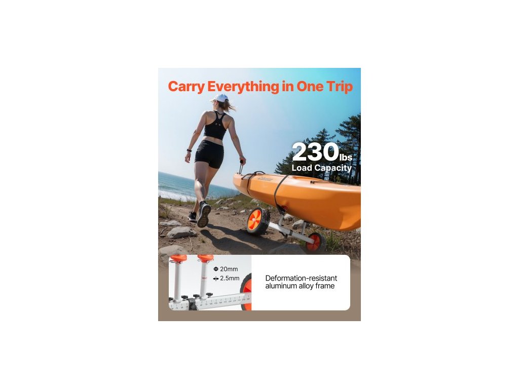 Kajakový vozík , nosnost 104 kg, vozík na kánoi s 25,4 cm plnými PU pneumatikami a stojánkem, složení a rozložení během několika sekund, vozík na paddleboard pro kajaky, kánoe a paddleboardyVysoce pevný rám z hliníkové slitiny