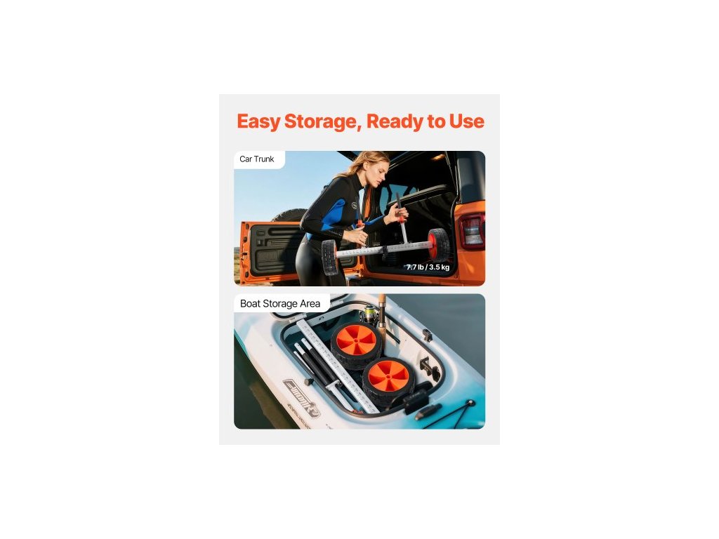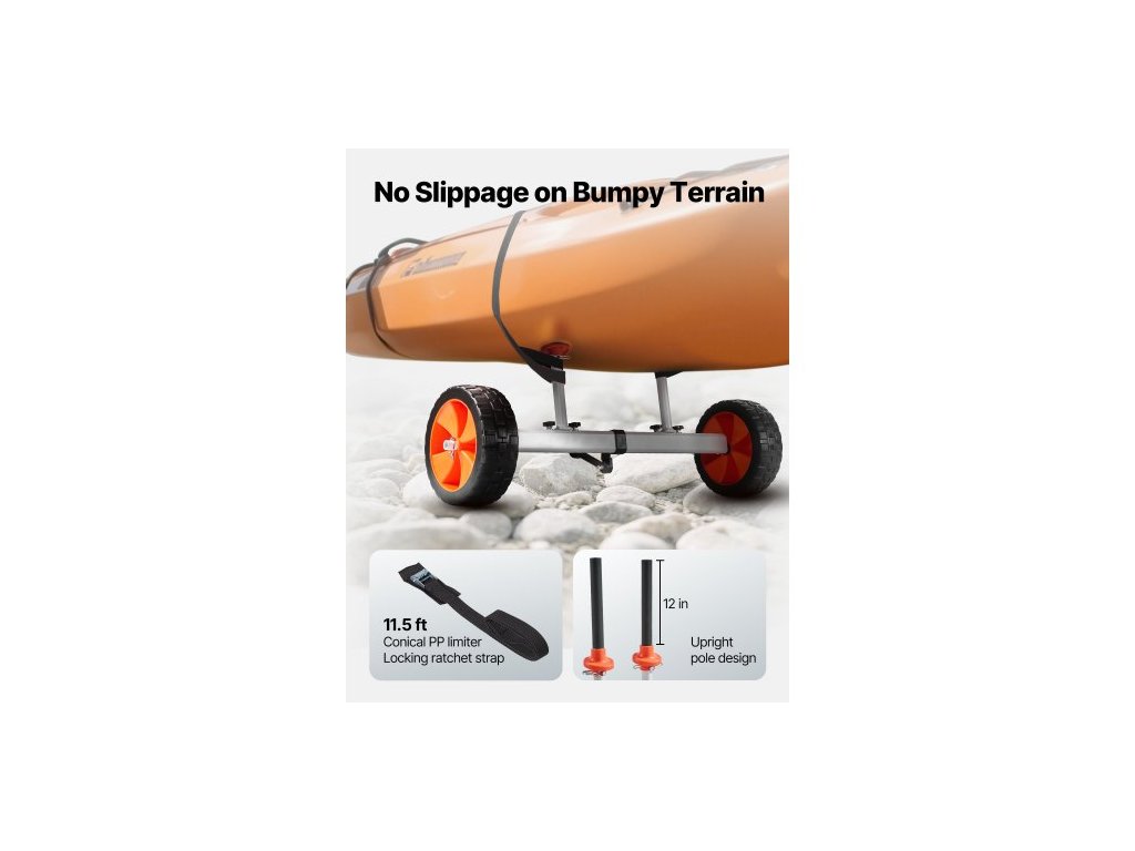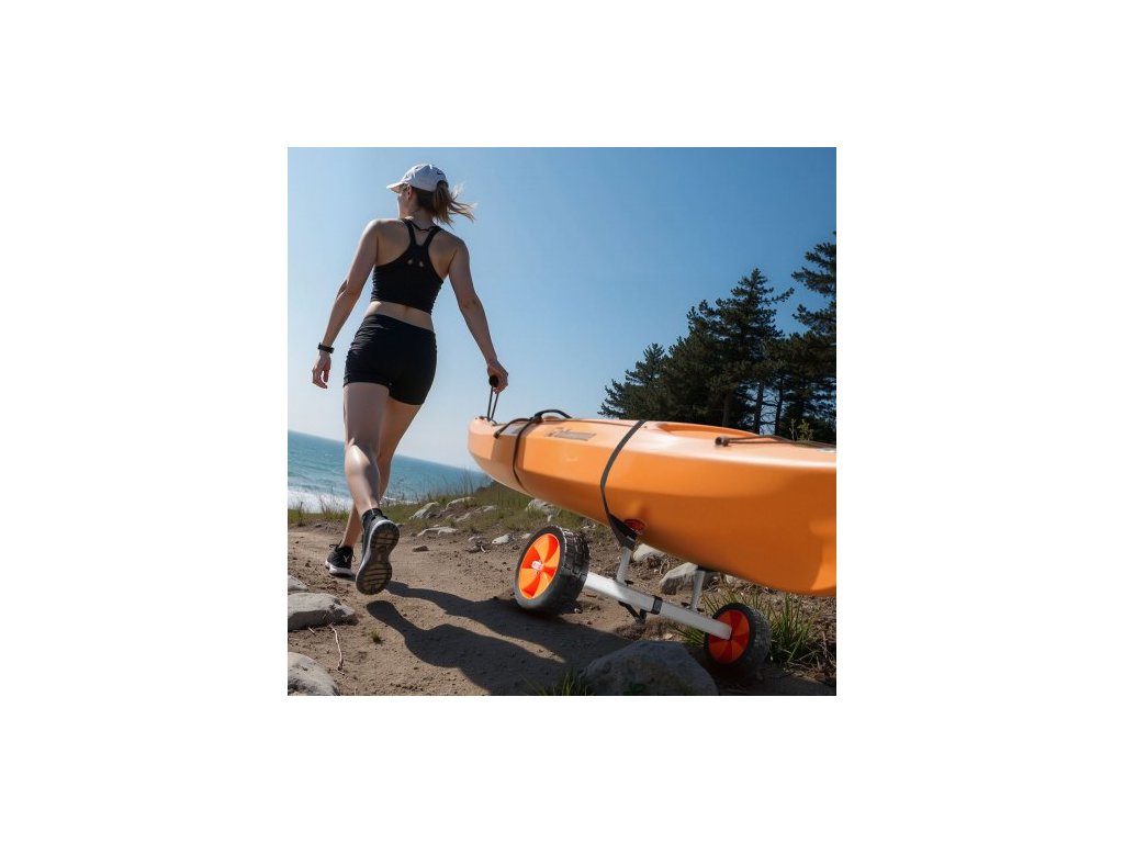 Kajakový vozík , nosnost 104 kg, vozík na kánoi s 25,4 cm plnými PU pneumatikami a stojánkem, smontovatelný a rozebraný během několika sekund, vozík na paddleboard pro kajaky, kánoe a paddleboardy
