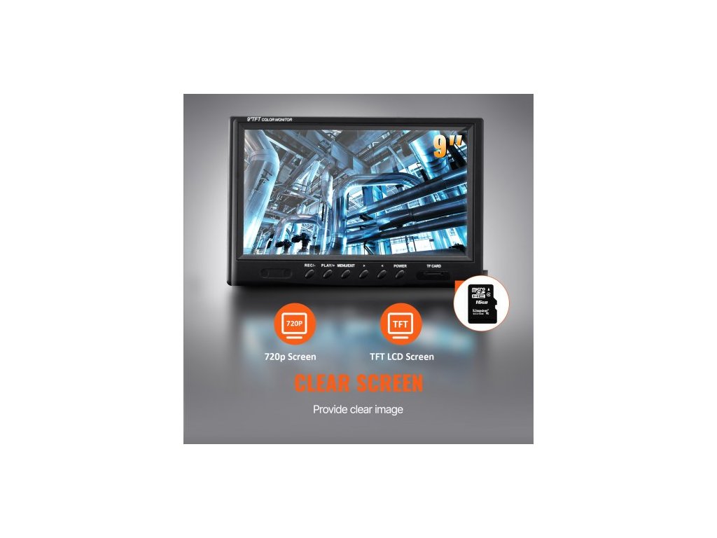 LED světlo kamery: 12 ks, Pixely kamery: 1 milion, Velikost obrazovky: 9 palců, Úhel pohledu: 130 stupňů, Vodotěsnost: IP68, Průměr kamery: 23 mm, Nastavitelné LED: Ano, Doba provozu na baterii: 6 hodin, Úložiště: SD karta 16 GB, Kapacita baterie: 4500 mAh, Délka kabelu: 50 m, Délka kamery: 143 mm, Materiál kamery: Nerezová ocel 303