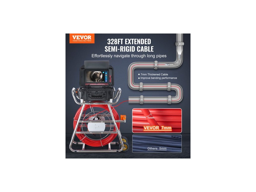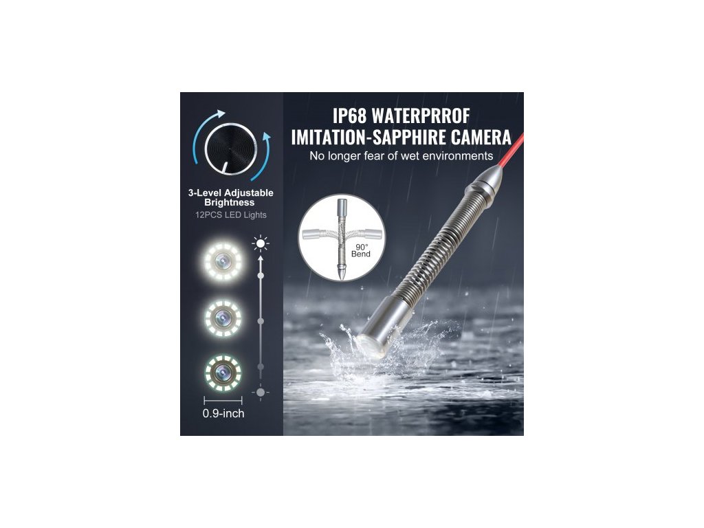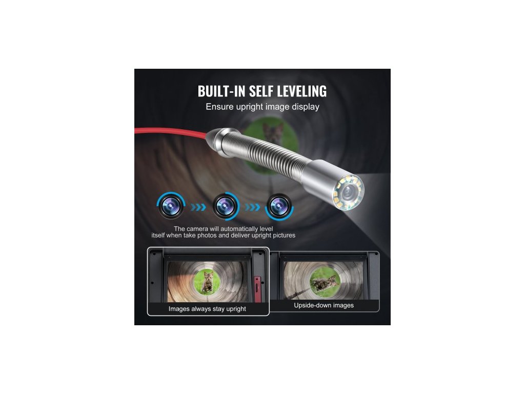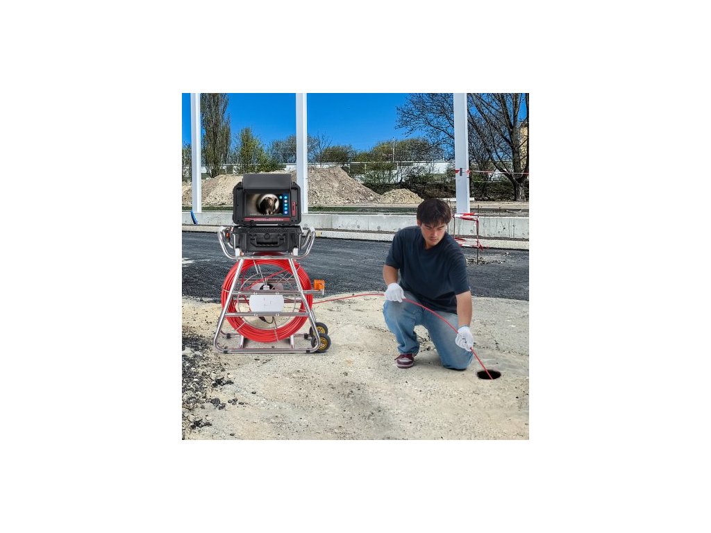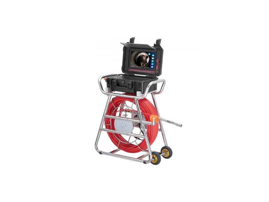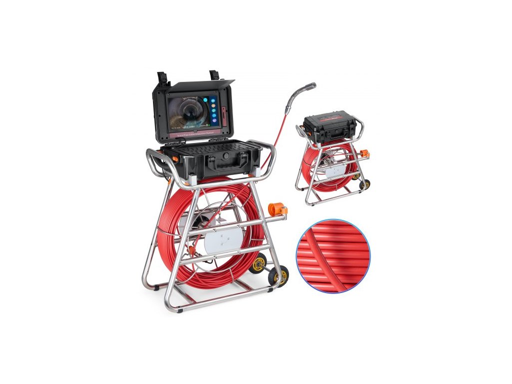 Kanalizační kamera , 100 m, samonivelační kamera do odpadu s 10,1" dotykovou obrazovkou, vysílačem 512 Hz a čítačem vzdálenosti, instalatérská kamera s krytím IP67 a světly - 12 LED, 32GB karta pro potrubí