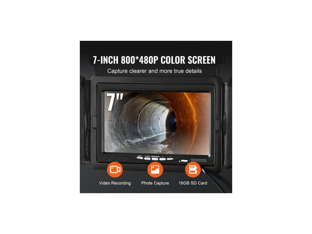 Kanalizační kamera , 50 m, 7" obrazovka, inspekční kamera pro potrubí s funkcí DVR, vodotěsná kamera IP68, 12 ks nastavitelných LED diod, s 16GB SD kartou pro kanalizaci, potrubí, odtokové potrubíVynikající kvalita kamery