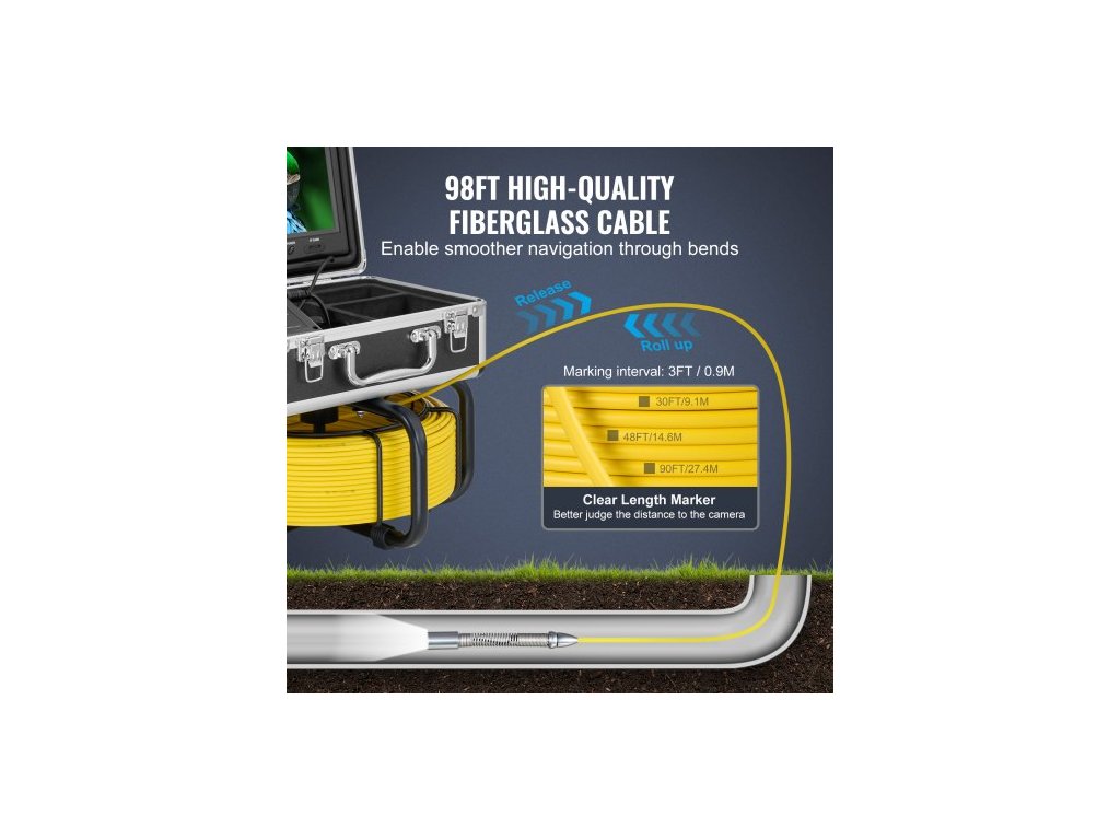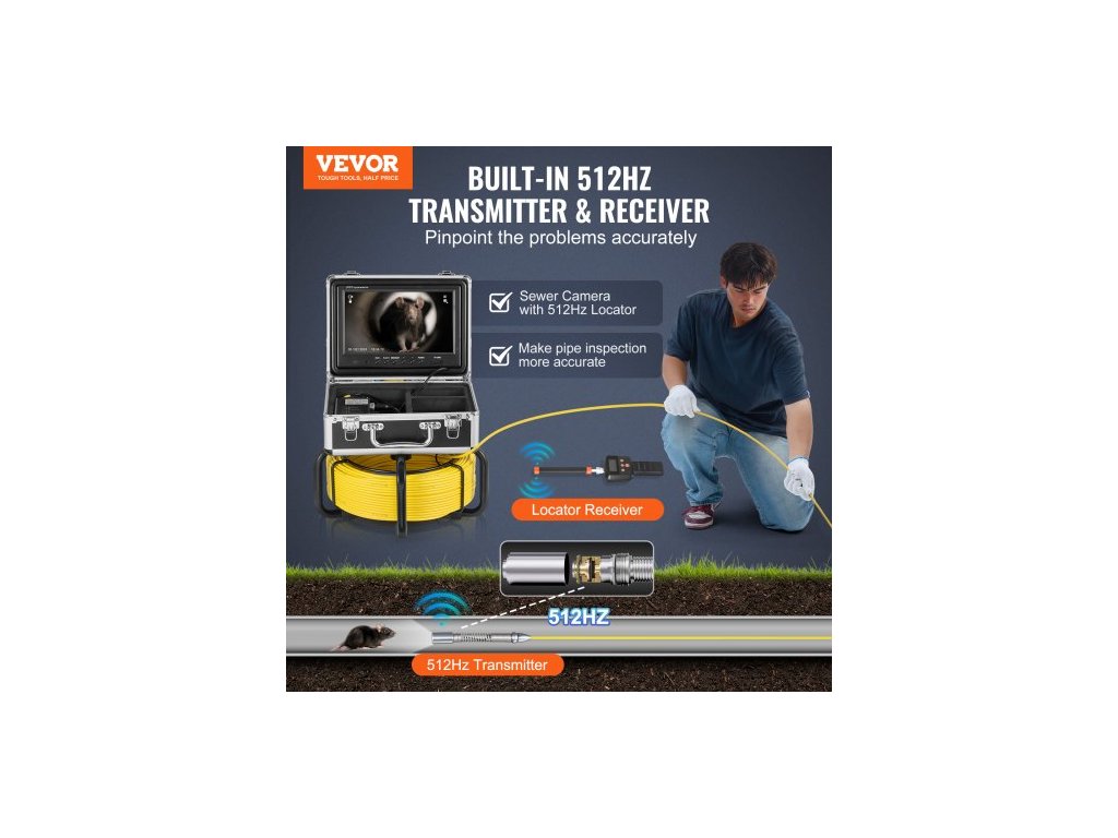 Kanalizační kamera s lokátorem 512Hz, 98 stop/30 m, samonivelační inspekční kamera pro odpady s 9" 1080P HD obrazovkou, 36x zoom, instalatérská kamera typu Snake s osvětlením - 12 LED, 32GB SD karta pro potrubíPřesné a efektivní vyhledávání