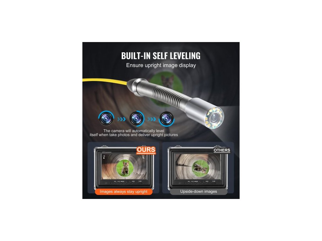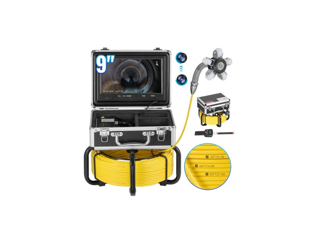 Kanalizační kamera s lokátorem 512 Hz, dosah 30 m, samonivelační inspekční kamera pro odpady s 9" HD obrazovkou 1080P, 36násobným zoomem, instalatérská kamera typu Snake s osvětlením - 12 LED, 32GB SD karta pro potrubí