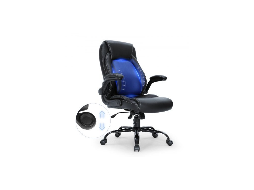 Kancelářská židle s moderní nastavitelnou bederní opěrkou, ergonomická kancelářská židle z umělé kůže s vysokým opěradlem pro bolesti zad a polstrovanými výklopnými područkami