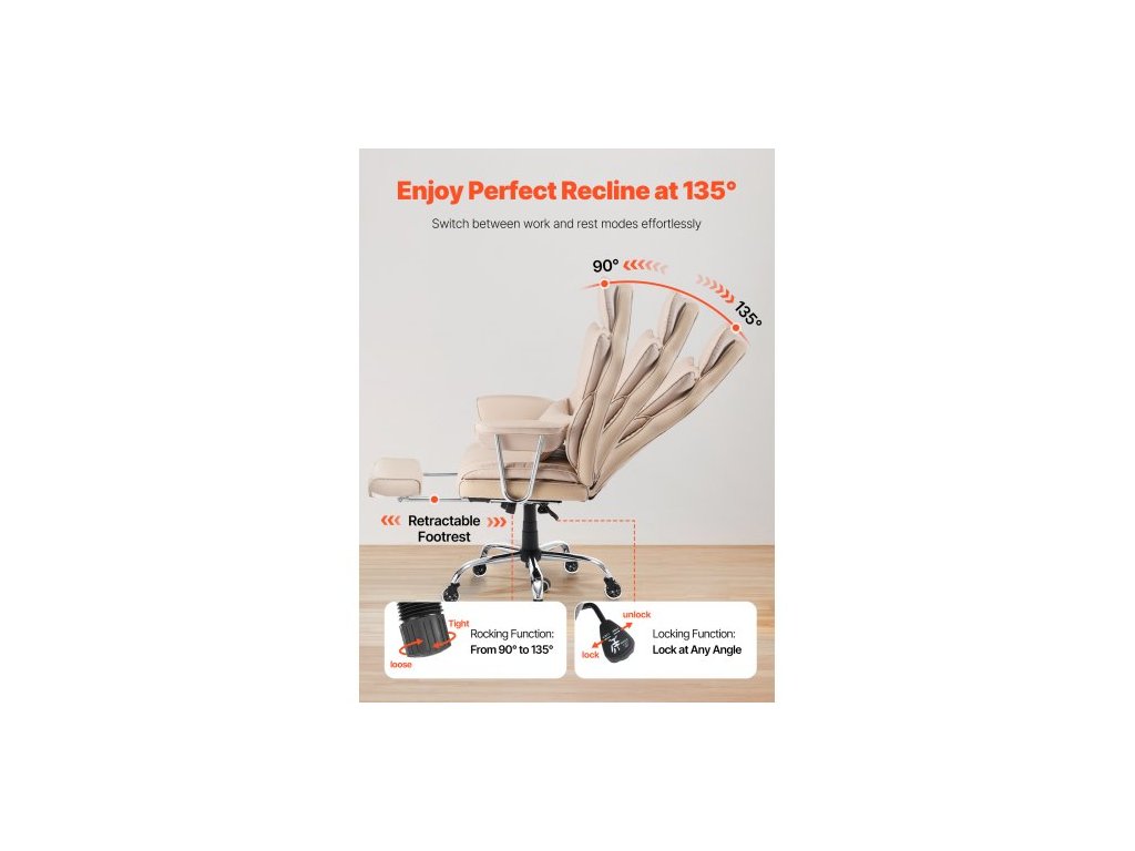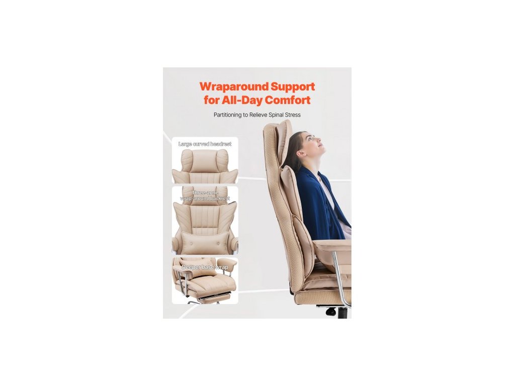 Kancelářská židle , vysoké opěradlo s podnožkou a odnímatelnými područkami, ergonomická kancelářská židle s vysoce odolným pěnovým polštářem, otočná kolečková židle z PU kůže pro práci, studium, hry, hnědáZónová opora