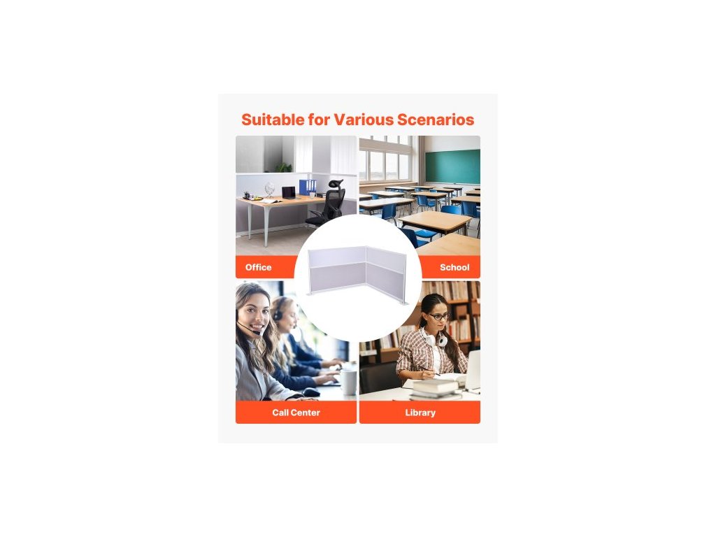 Kancelářské dělicí stěny pro zajištění soukromí, balení po 2 kusech, dělicí stěny 1,83 m x 1,22 m, pracovní box z PET materiálu s matnými akrylovými okny, volně stojící panely pro zajištění soukromí v kanceláři a knihovně