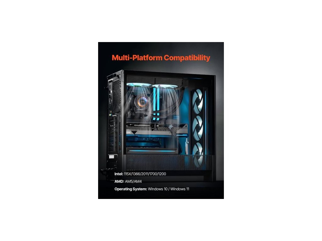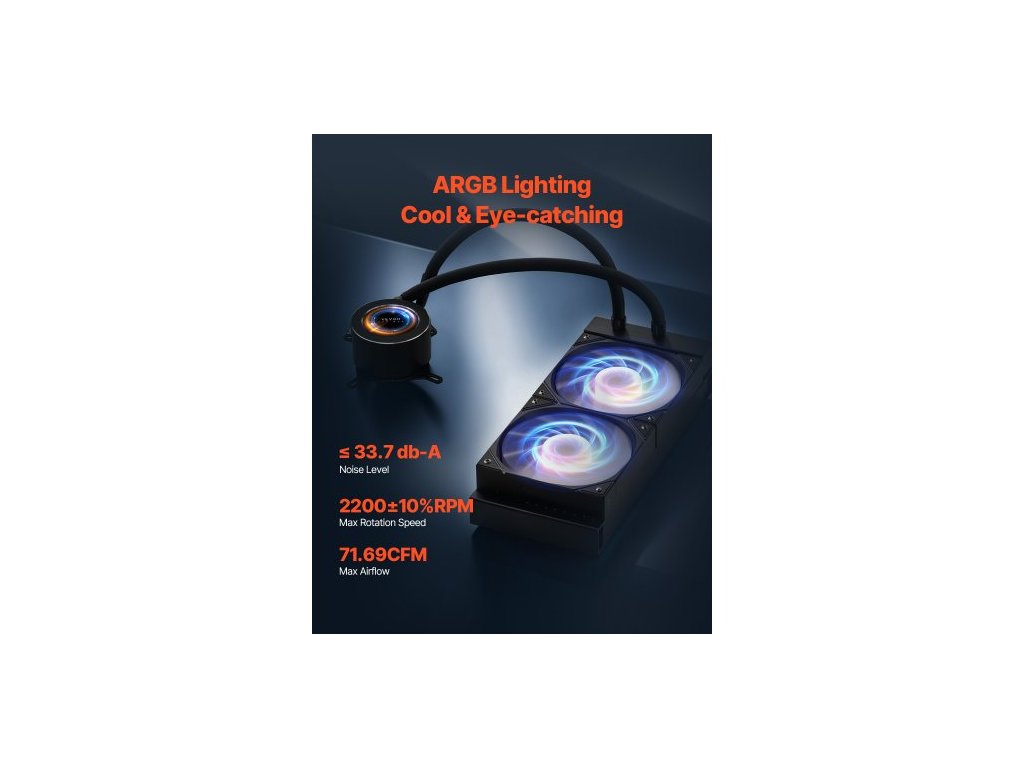 Kapalinový chladič CPU, vodní chladič CPU AIO - 120mm ventilátory PWN a čerpadlo, přizpůsobitelný černý kapalinový chladič pro PC s 2,1" LCD displejem a ARGB podsvícením, pro Intel 115X/1366/2011/1700/1200, AMD AM4/AM5