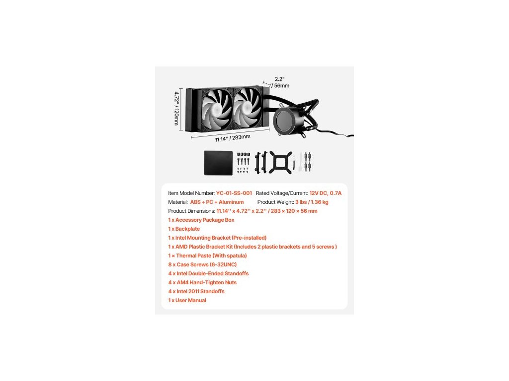 Jmenovité napětí/proud: 12V DC, 0,7A,Číslo modelu položky: YC-01-SS-001,Hmotnost výrobku: 1,36 kg,Materiál: ABS + PC + hliník,Rozměry výrobku: 283 x 120 x 56 mm