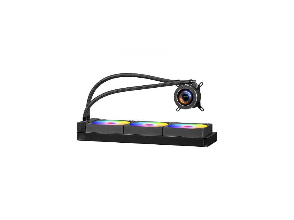 Kapalinový chladič CPU, vodní chladič CPU AIO - 3 x 120mm ventilátory PWN a čerpadlo, přizpůsobitelný černý kapalinový chladič pro PC s 2,1" LCD displejem a ARGB podsvícením, pro Intel 115X/1366/2011/1700/1200, AMD AM4/AM5