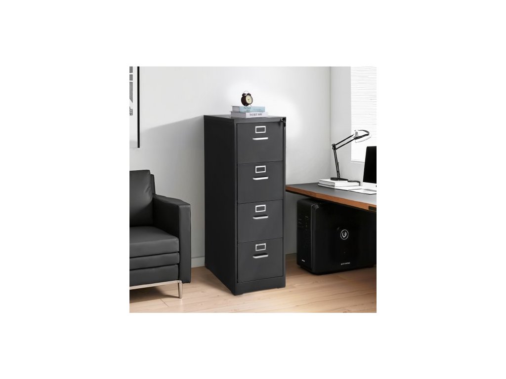 Kartotéka se 4 zásuvkami a zámkem, kovová vertikální kartotéka pro domácí kancelář, odolná skříň s odnímatelnou závěsnou tyčí, pro pořadače formátu A4/Letter/Legal, snadná montáž (černá)