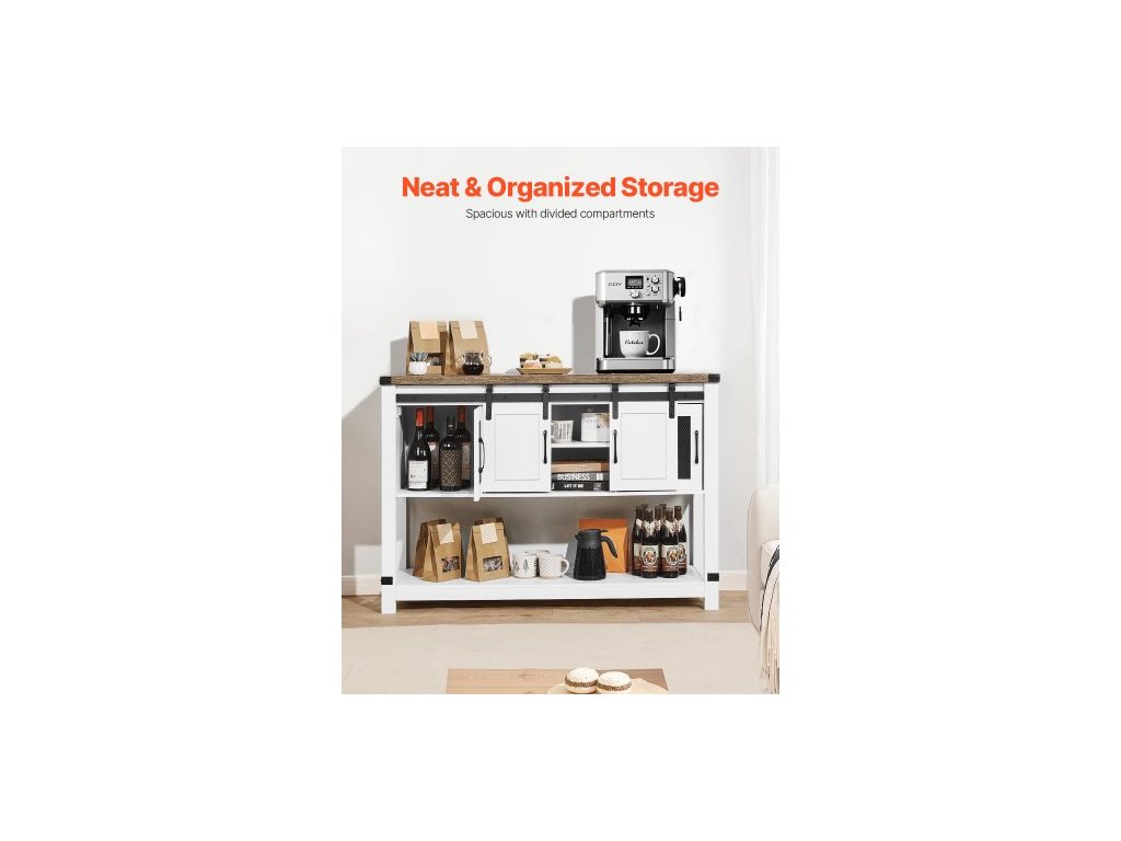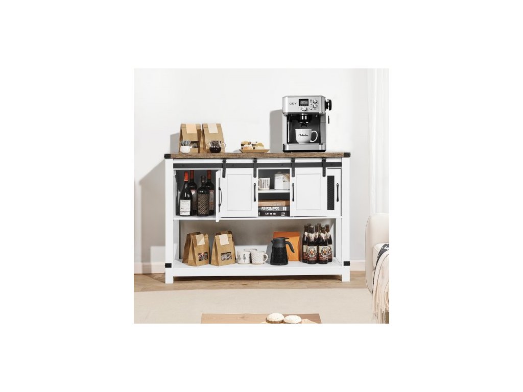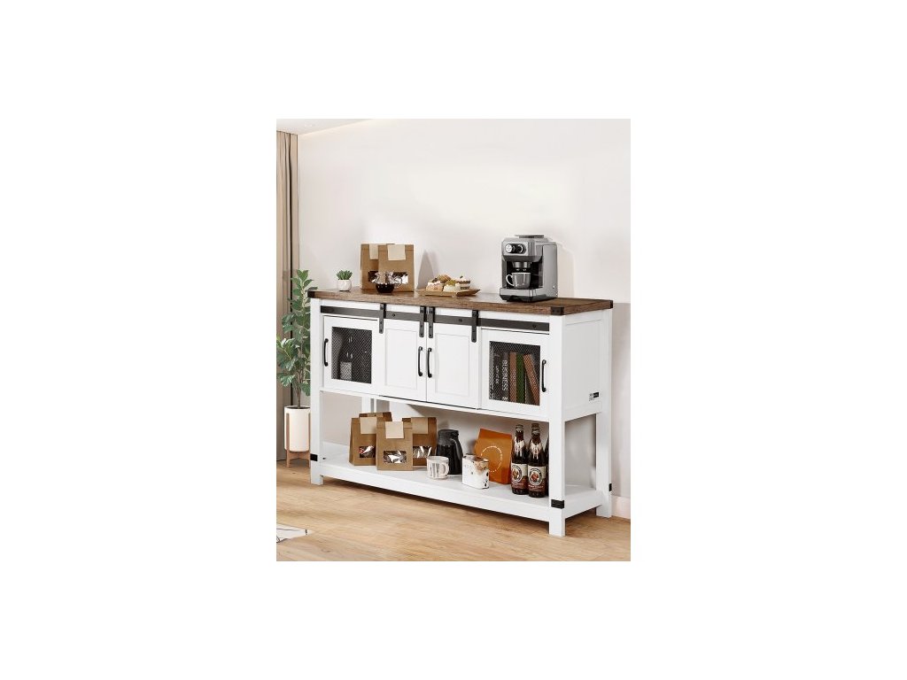 Kávová skříňka, 47,3 x 15,7 x 32,7 palce Farmářská kávová skříňka se 4patrovým úložným prostorem, barový stolek s dvířky do stodoly, farmářská příborník/bufetová skříňka do obývacího pokoje, do předsíněFarmářský styl