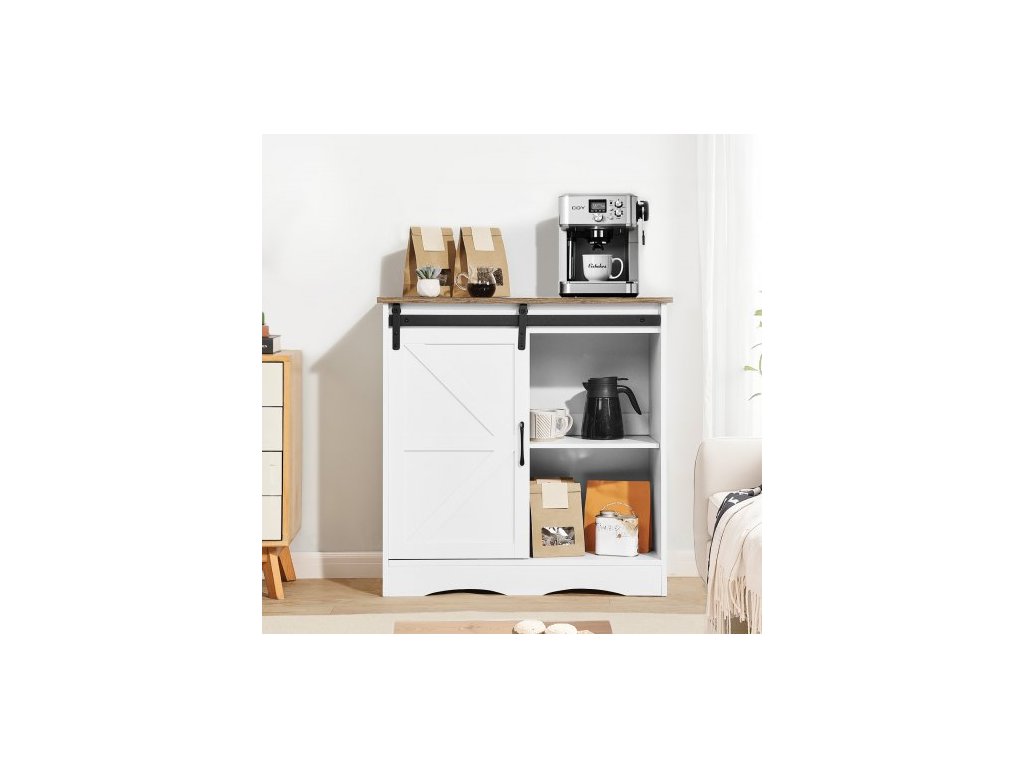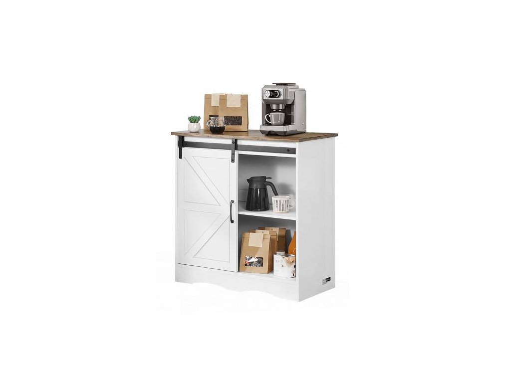 Kávová skříňka, 81,5 x 33,8 x 81,5 cm, farmářská kávová skříňka s 3patrovým úložným prostorem, barový stolek s dvířky do stodoly, farmářská příborník/bufetová skříňka do obývacího pokoje, do předsíněFarmářský styl