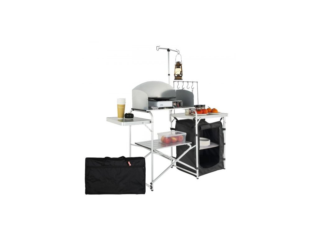 Kempingový kuchyňský stůl, skládací přenosný kuchyňský stůl, 1 skříňka a čelní sklo