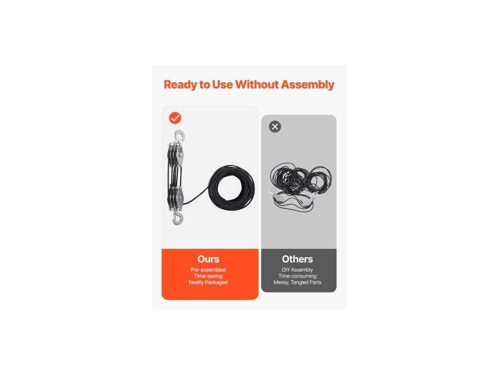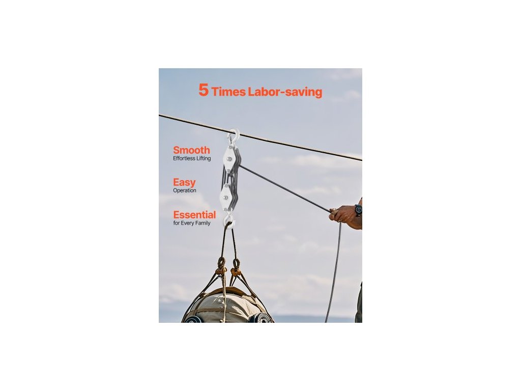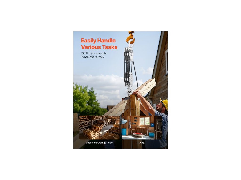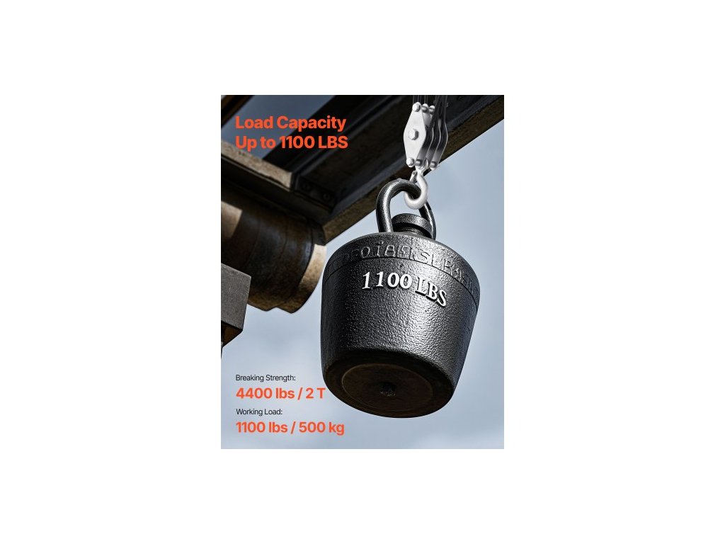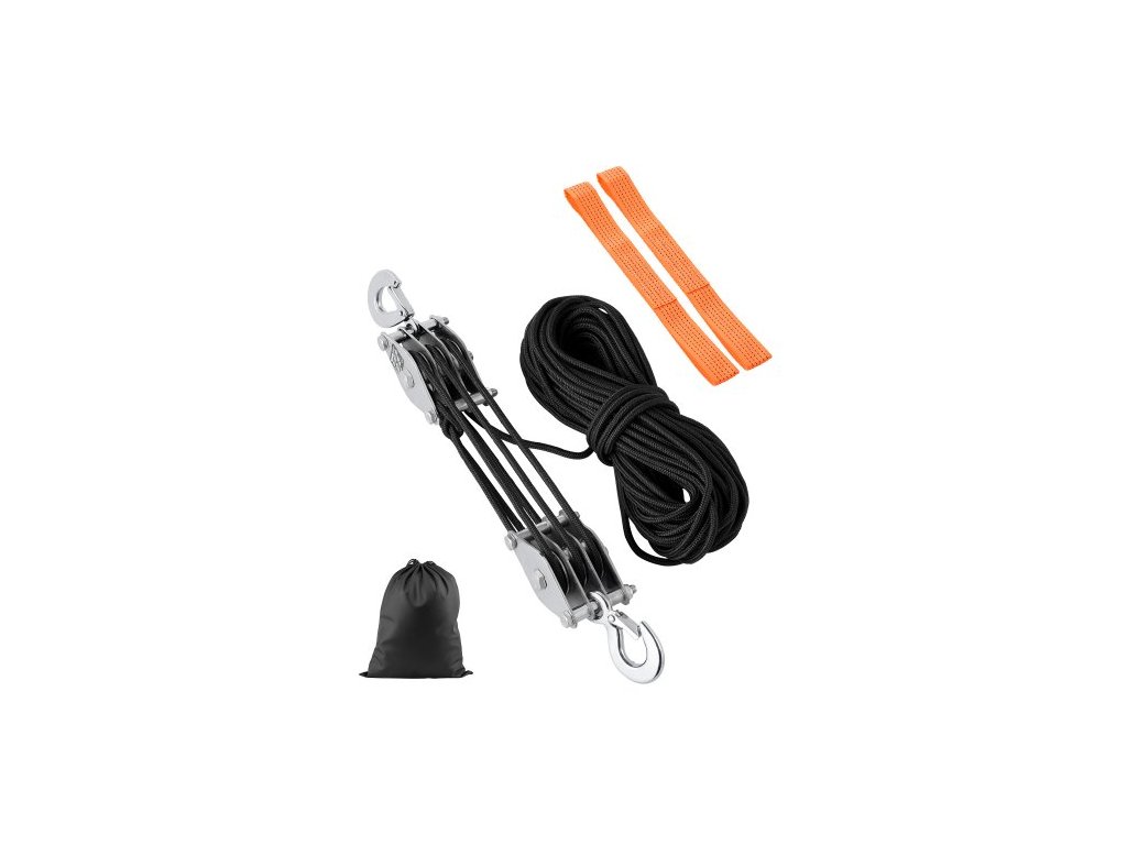 Kladkostroj s nosností 4400 liber, 100 stop, nosnost 5:1, systém kladkostrojů pro vysoké zatížení s 2 měkkými smyčkami, kovová kola, nosná konstrukce, kladka a kladkostroj pro zvedání těžkých předmětůProfesionální zvedací síla