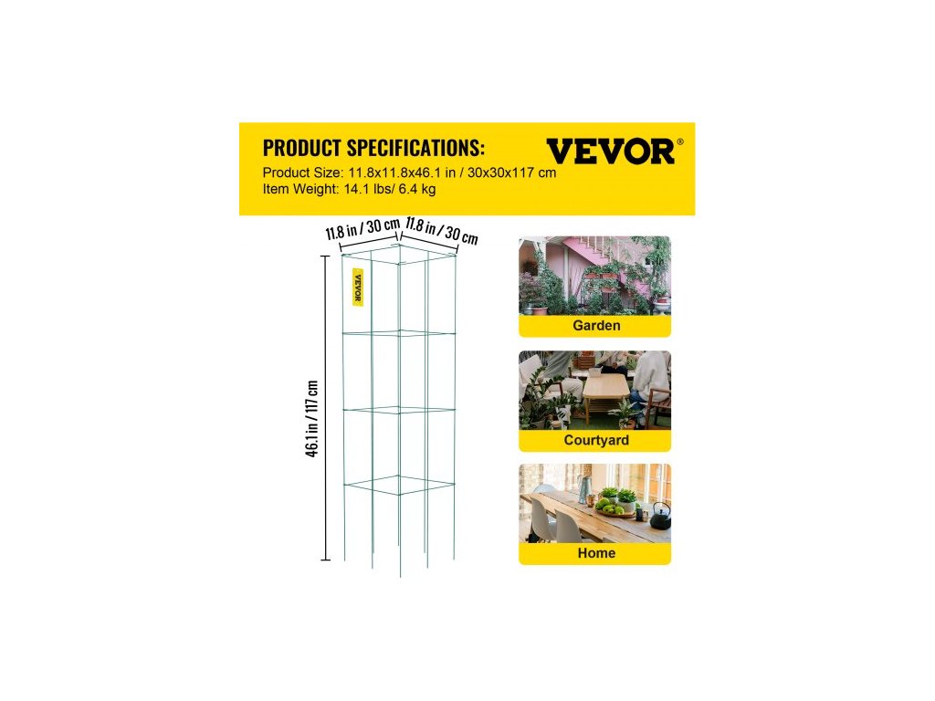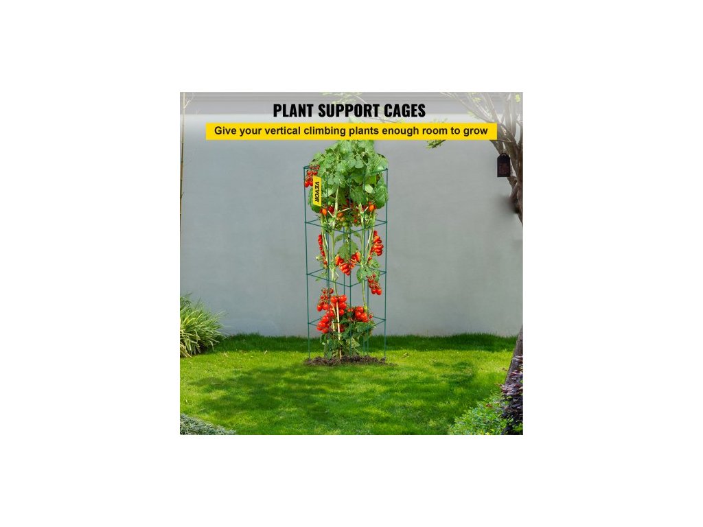 Klece na rajčata , 29,4 cm x 29,4 cm x 117,4 cm, 5 balení čtvercových klecí na podporu rostlin, zelené ocelové věže na rajčata s PVC povlakem pro popínavou zeleninu, rostliny, květiny a ovoceKlece ideální velikosti