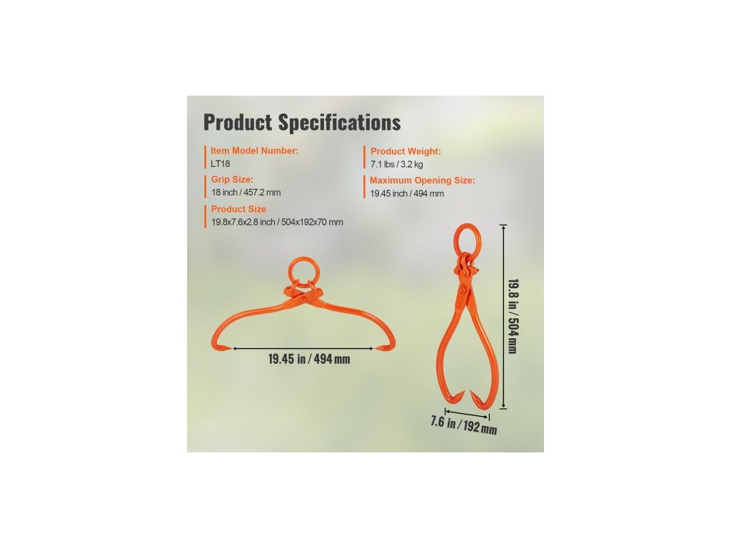 Rozměr úchopu: 18 palců/457,2 mm,Maximální otvor: 19,45 palce/494 mm,Číslo modelu položky: LT18,Hmotnost výrobku: 7,1 liber/3,2 kg,Maximální nosnost: 772 liber/350 kg,Rozměry výrobku: 19,8x7,6x2,8 palce/504x192x70 mm