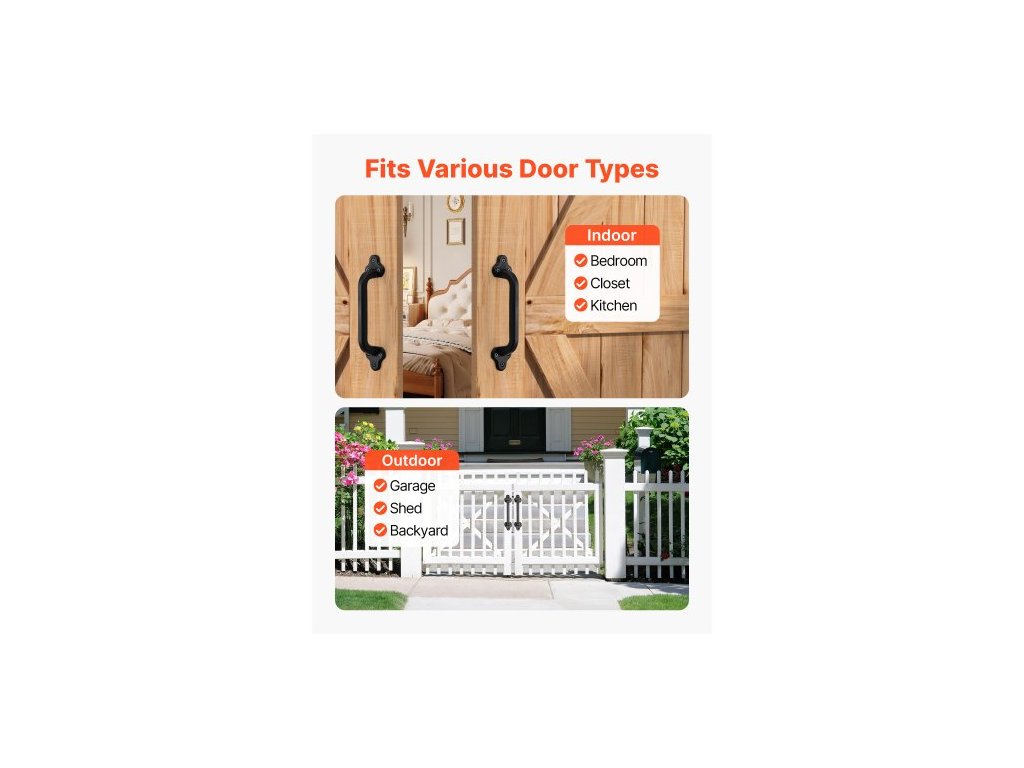 klika pro stodolní dveře, 2 ks 231 mm rustikální klika pro plotovou bránu, povlak odolný proti korozi, odolné kliky z uhlíkové oceli pro venkovní brány, snadná instalace, kovové úchyty pro posuvné dveře do garáže/přístřešku/skříně